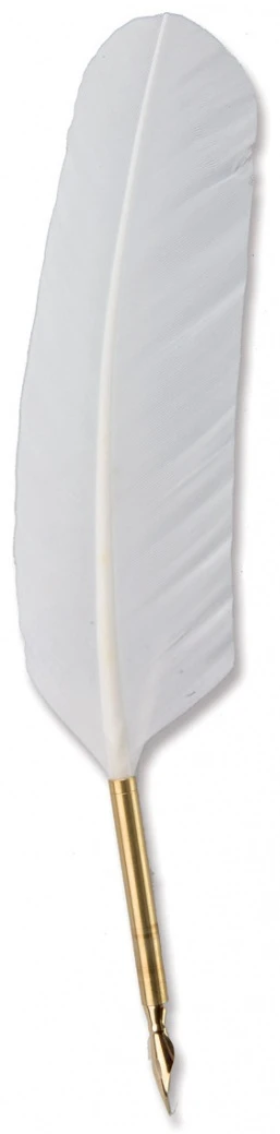 - Prawdziwe ptasie pióro z metalową rączką i stalówką do maczania w kałamarzu.