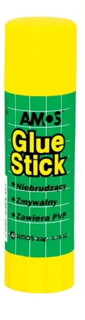 - Wysokiej jakości klej PVP w sztyfcie Amos, bezbarwny i bezwonny.