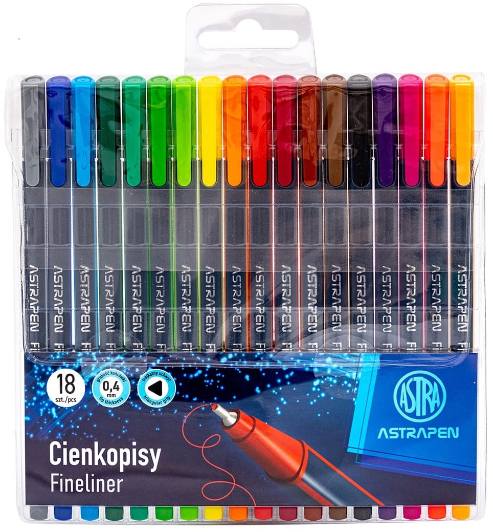 ASTRA Cienkopisy trójkątne 0,4 mm 18 kolorów