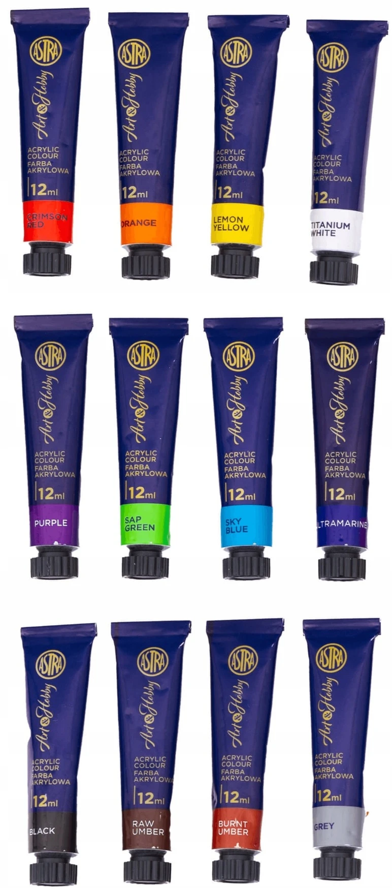 ASTRA Farby akrylowe w tubkach 12 kolorów