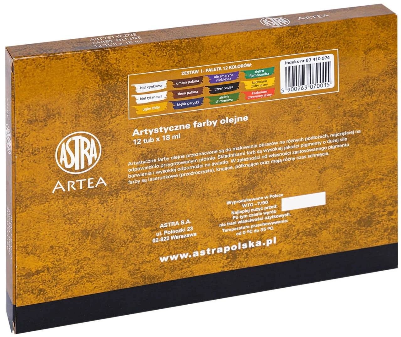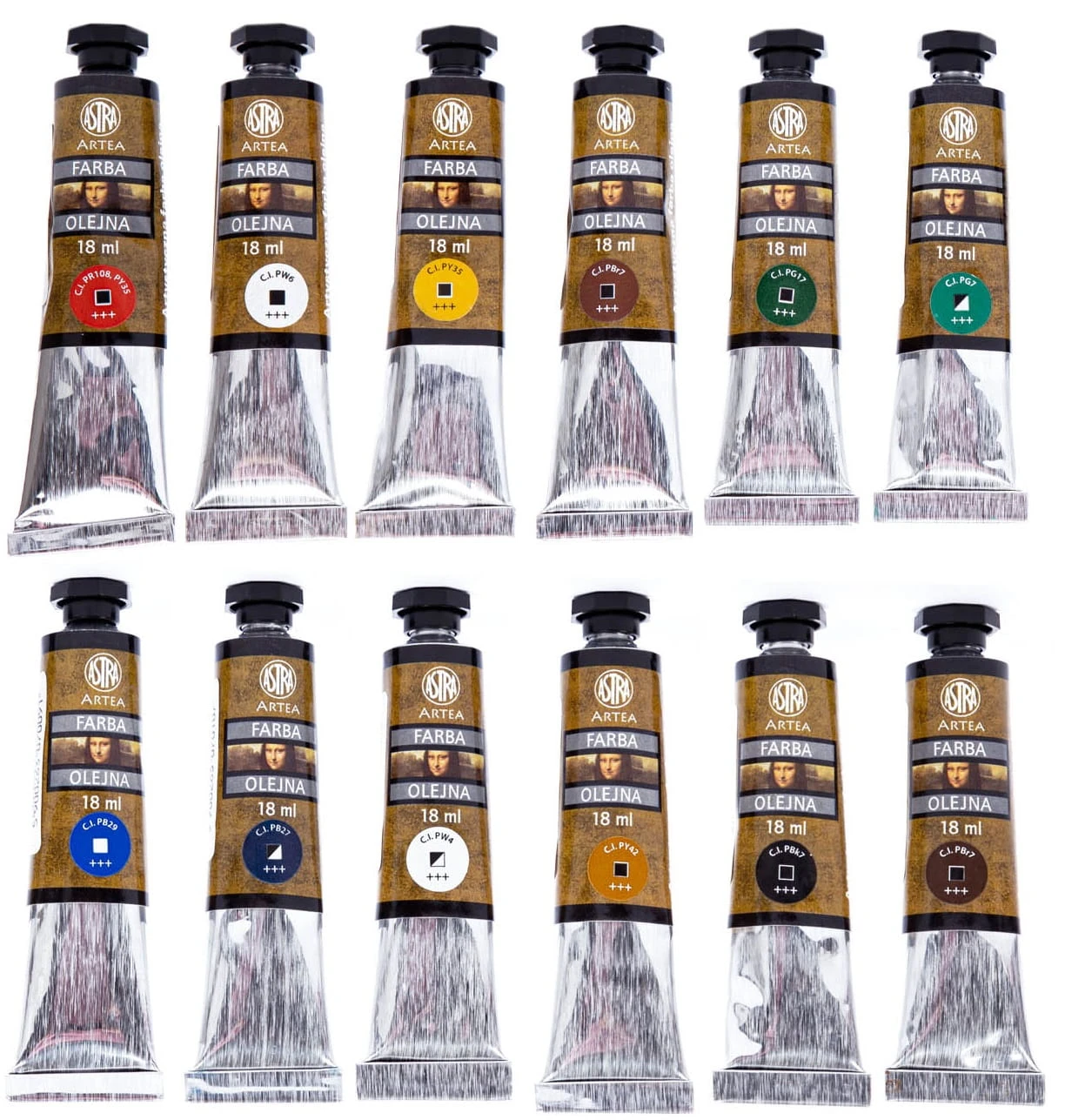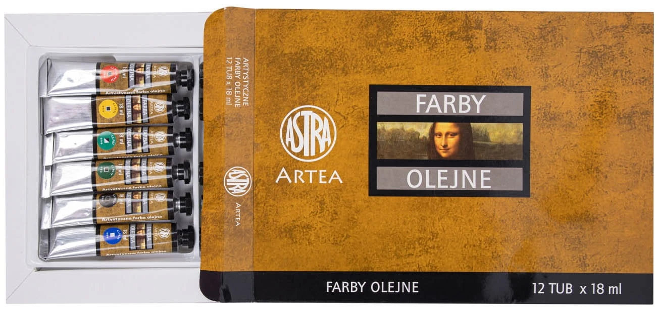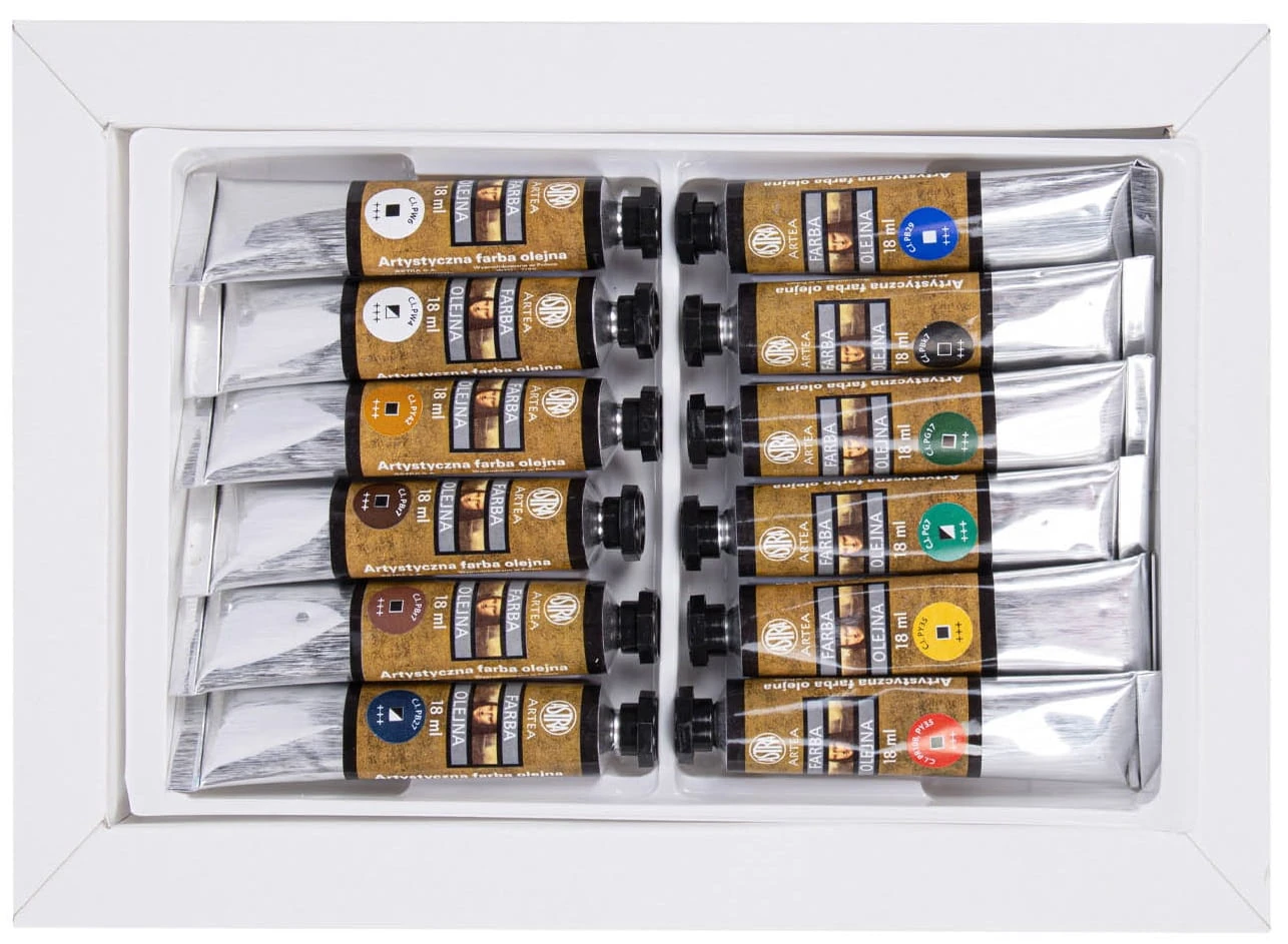 ASTRA Farby olejne w tubach artystyczne 12 kolorów po 18 ml Artea ZESTAW I