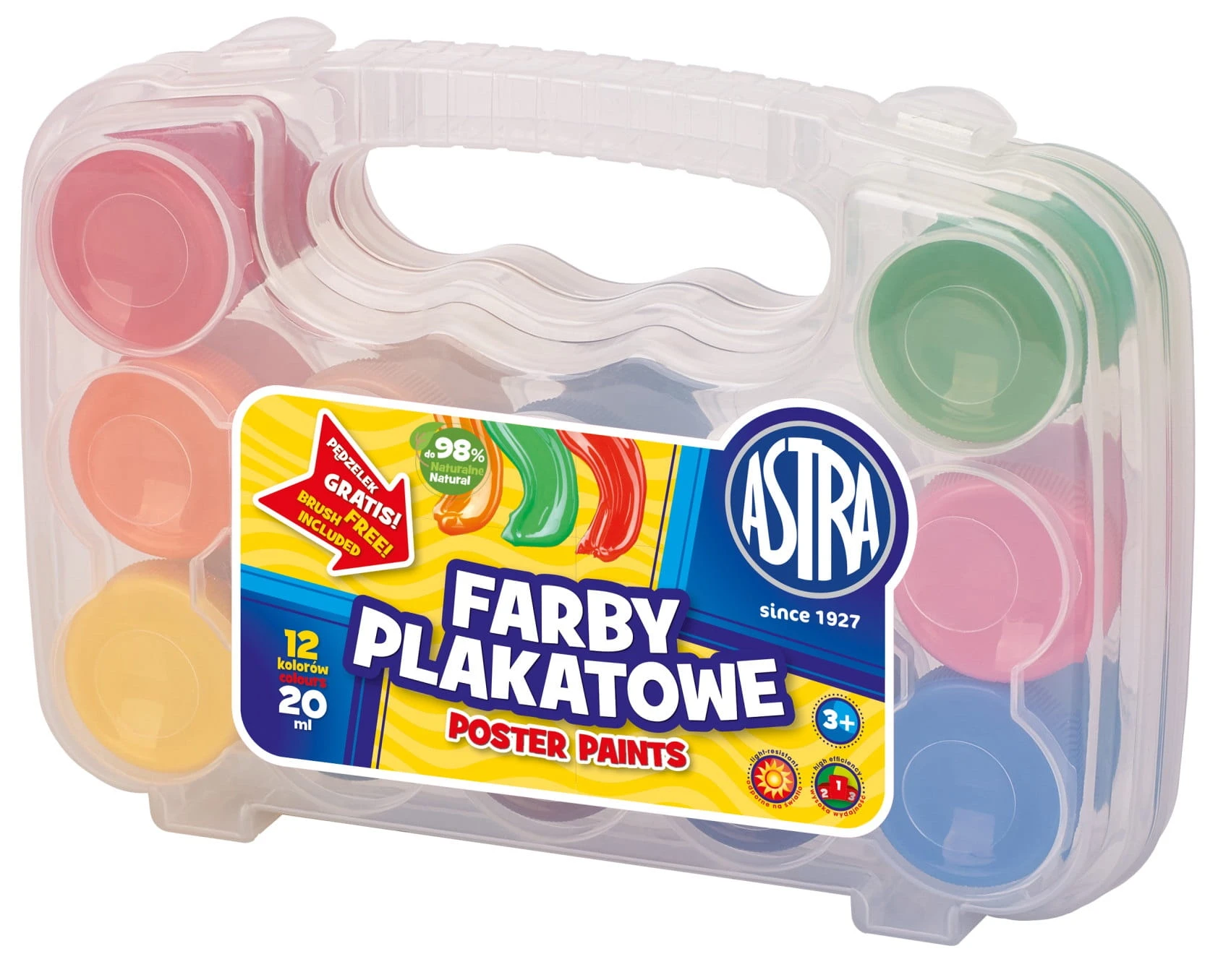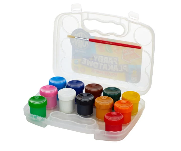 ASTRA Farby plakatowe 12 kolorów + pędzelek WALIZKA