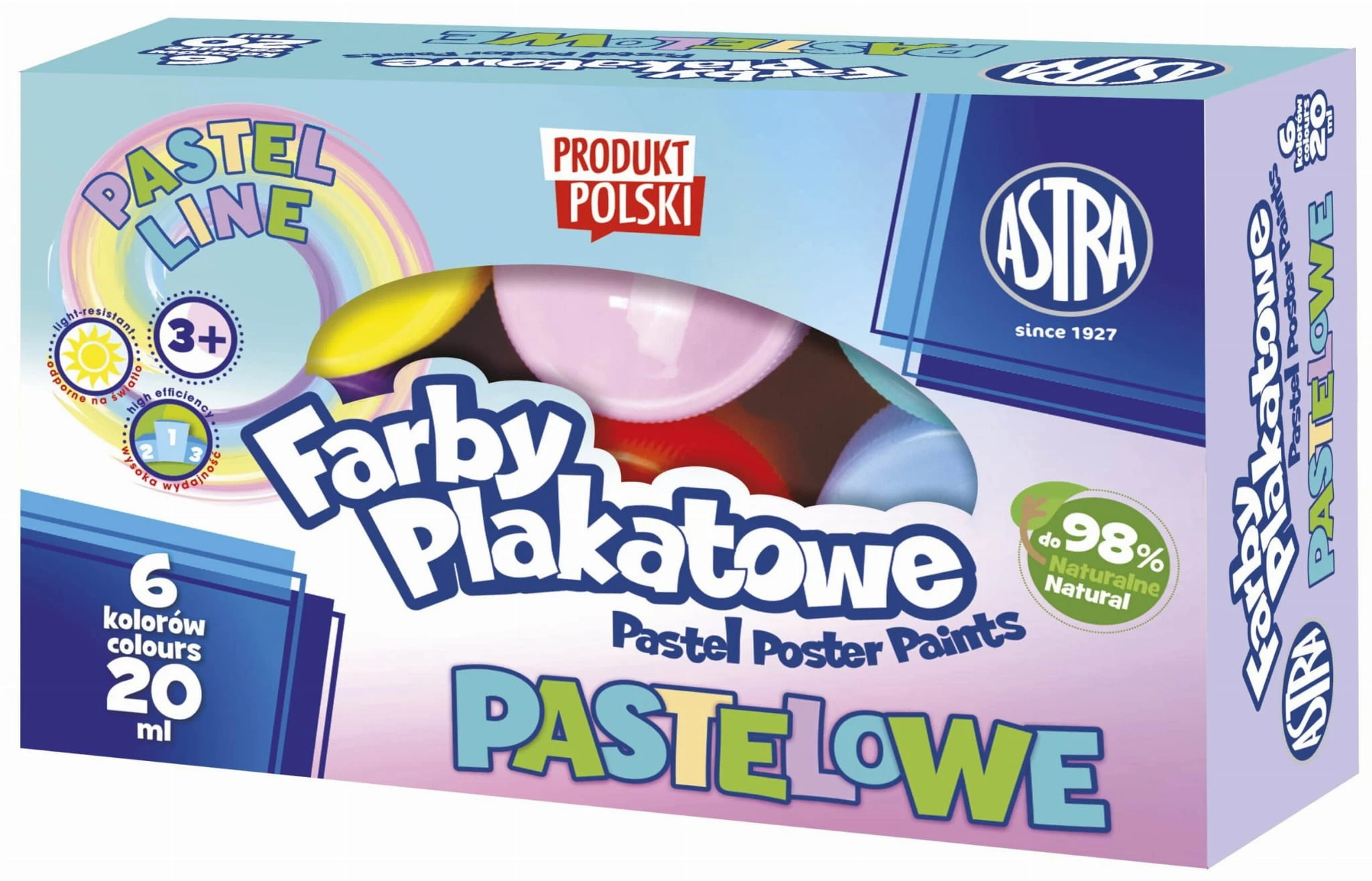 ASTRA Farby plakatowe pastelowe szkolne 6 kolorów x 20 ml
