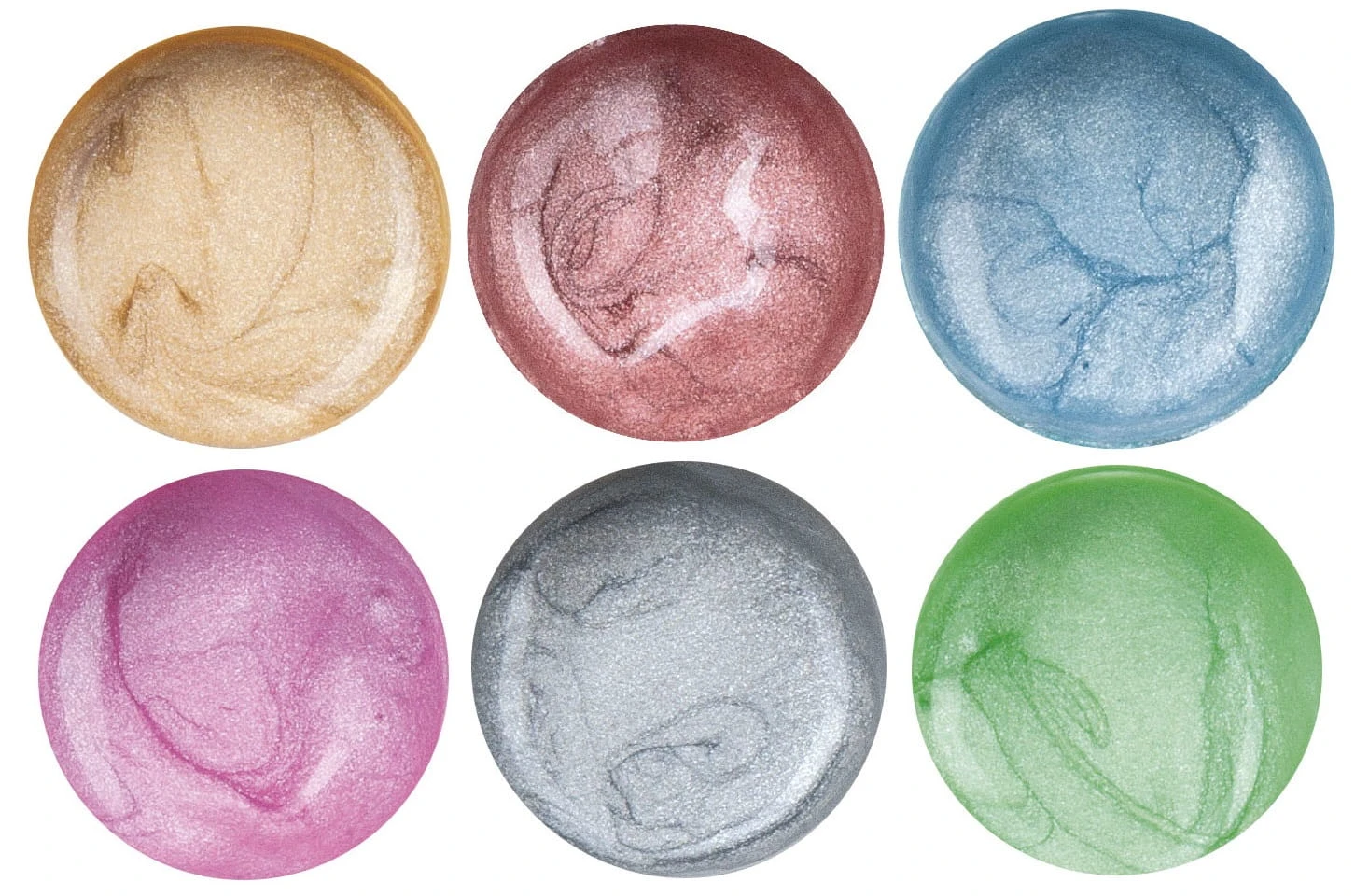 - Kolory farb perłowych można swobodnie nakładać jeden obok drugiego, gdyż nie zlewają się ze sobą.