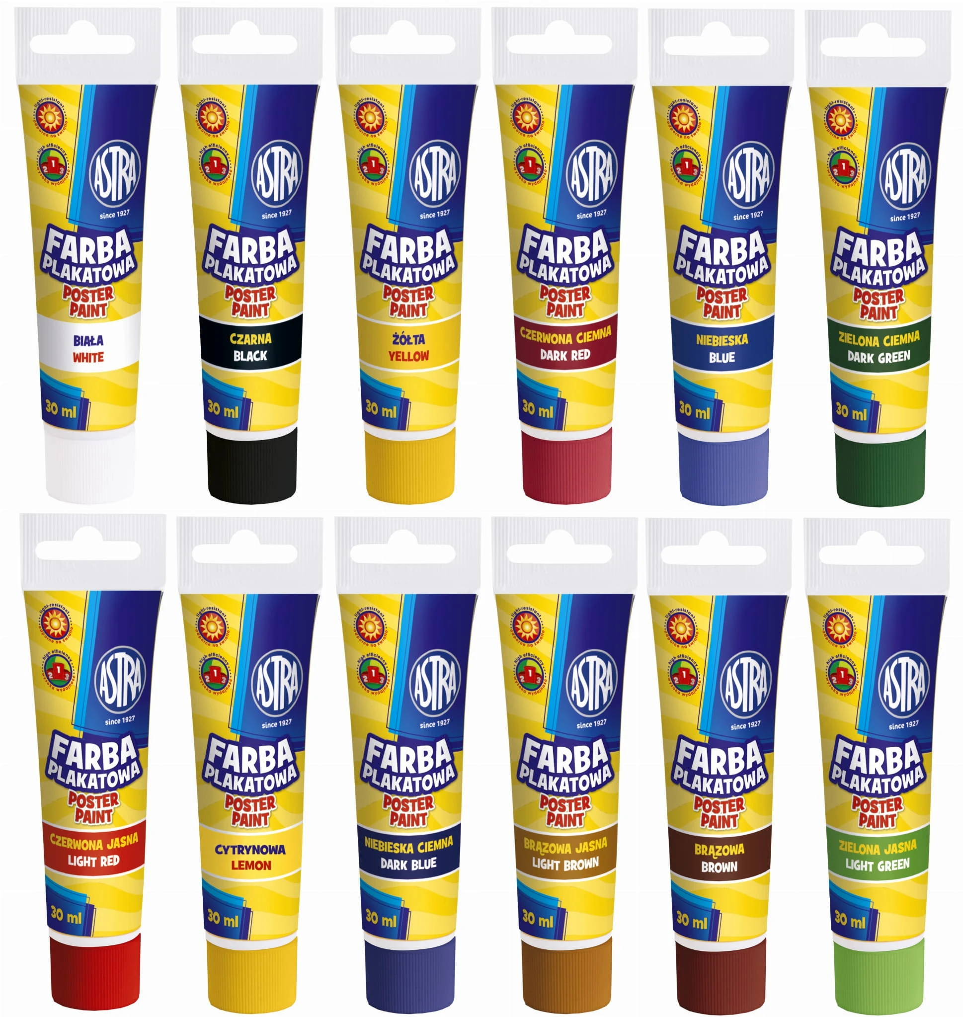ASTRA Farby plakatowe w tubach 12 kolorów 30 ml