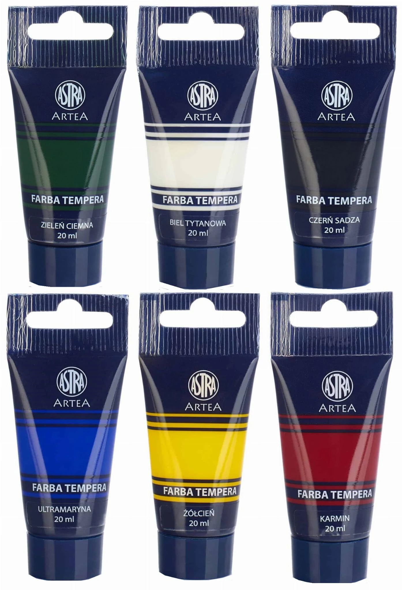 ASTRA Farby w tubach tempera 6 kolorów po 20 ml Artea