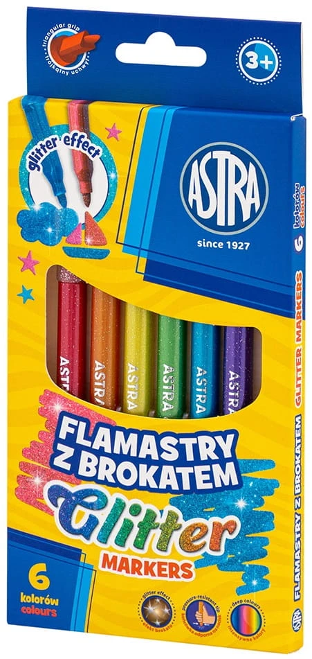 ASTRA Flamastry pisaki mazaki brokatowe Glitter 6 kolorów