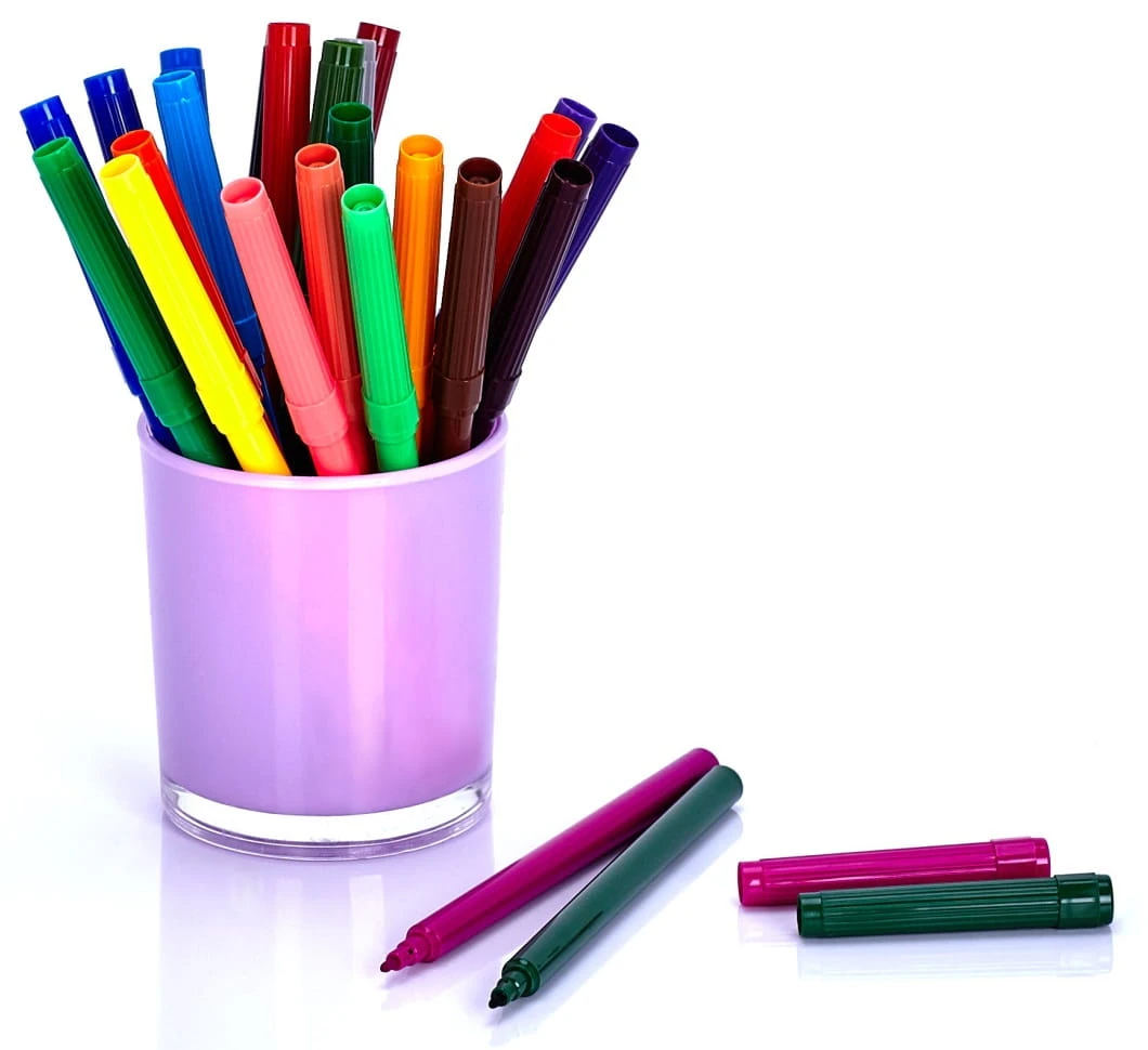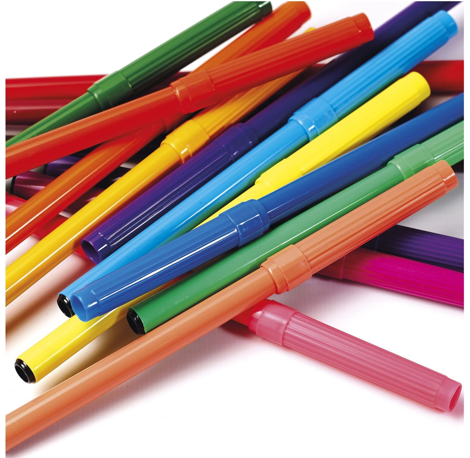 - Flamastry o standardowej grubości i okrągłym przekroju.