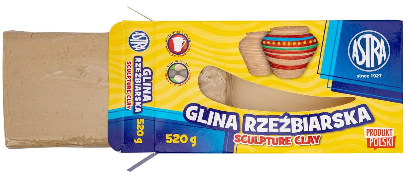 - Ze względu na swoje parametry, glina Astra doskonale nadaje się modelowania, rzeźbienia (lepienia), kształtowania na toczku, odciskania i odlewania w formach gipsowych.