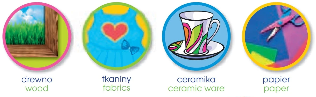 - Przeznaczony do klejenia papieru, drewna, kasetonów, korka, ceramiki, tkanin, folii aluminiowej, styropianu, szkła.