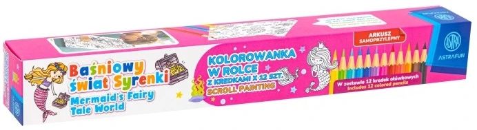 - Kolorowanka w rolce samoprzylepna 200 × 30 cm + 12 kredek ołówkowych Astra to zestaw kreatywny dla dzieci, który zapewnia godziny świetnej zabawy.