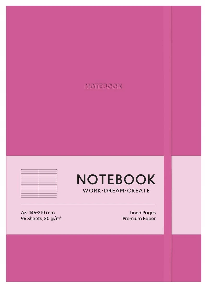 - Notes z twardą okładką zamykany na gumkę.