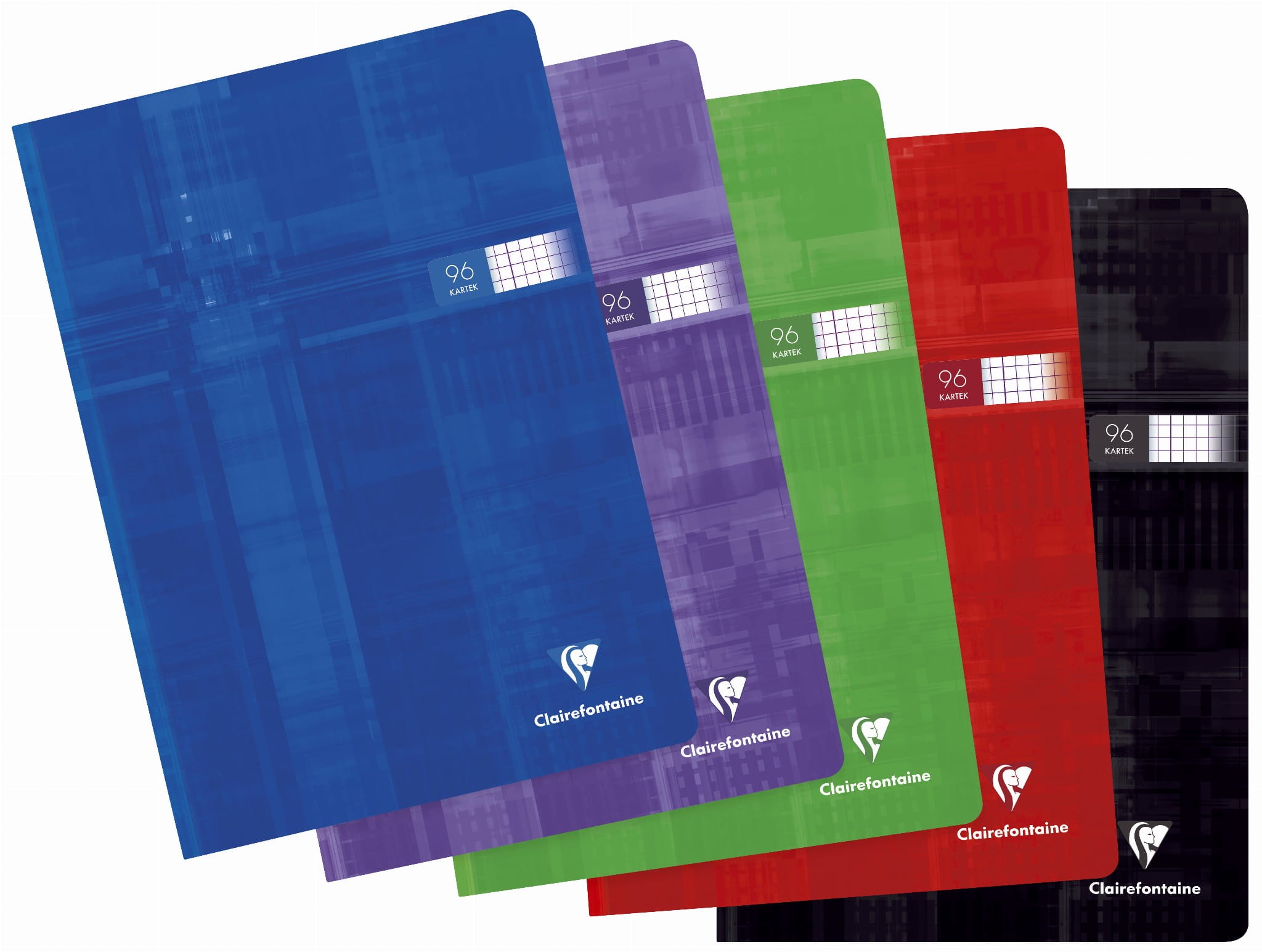 - Zeszyt Clairefontaine w kratkę w formacie A4 z okładką w 5 intensywnych kolorach (czarny, fioletowy, niebieski, czerwony, zielony - wysyłane losowo). To doskonałe połączenie wyjątkowej jakości i funkcjonalności.