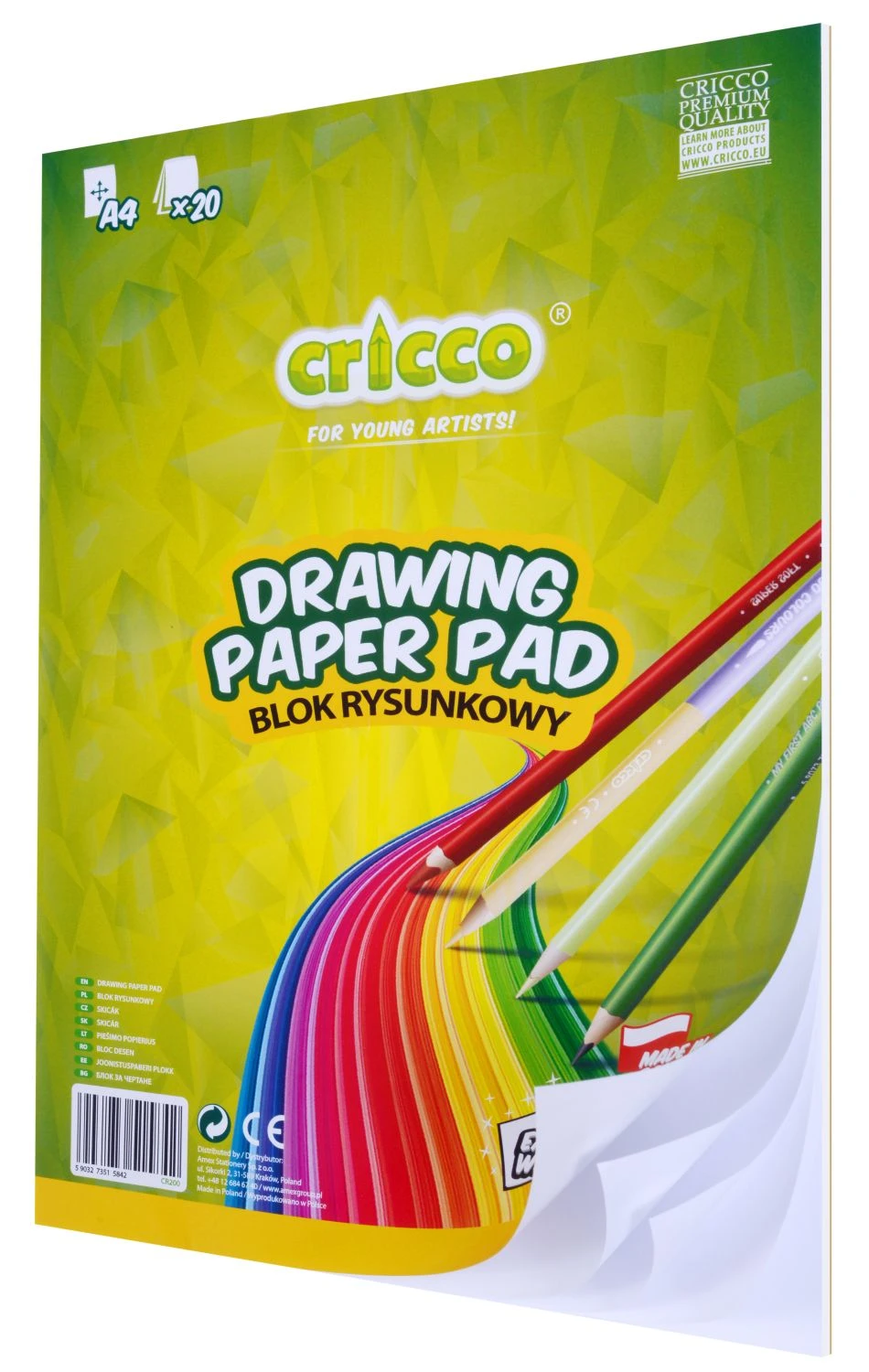 - Blok rysunkowy Cricco w formacie A4 z papierem w kolorze białym.