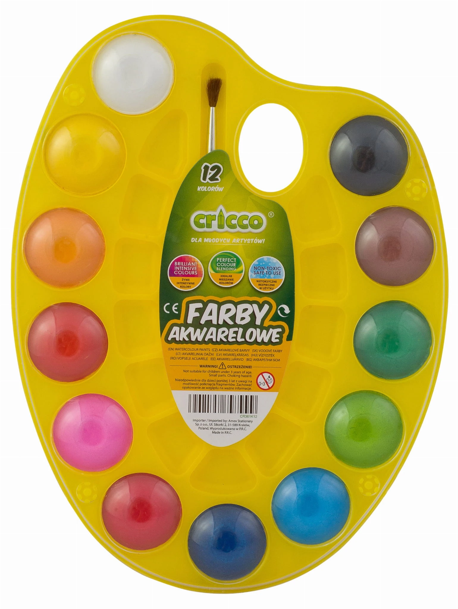 CRICCO Farby akwarelowe 30 mm 12 kolorów + paletka + pędzelek
