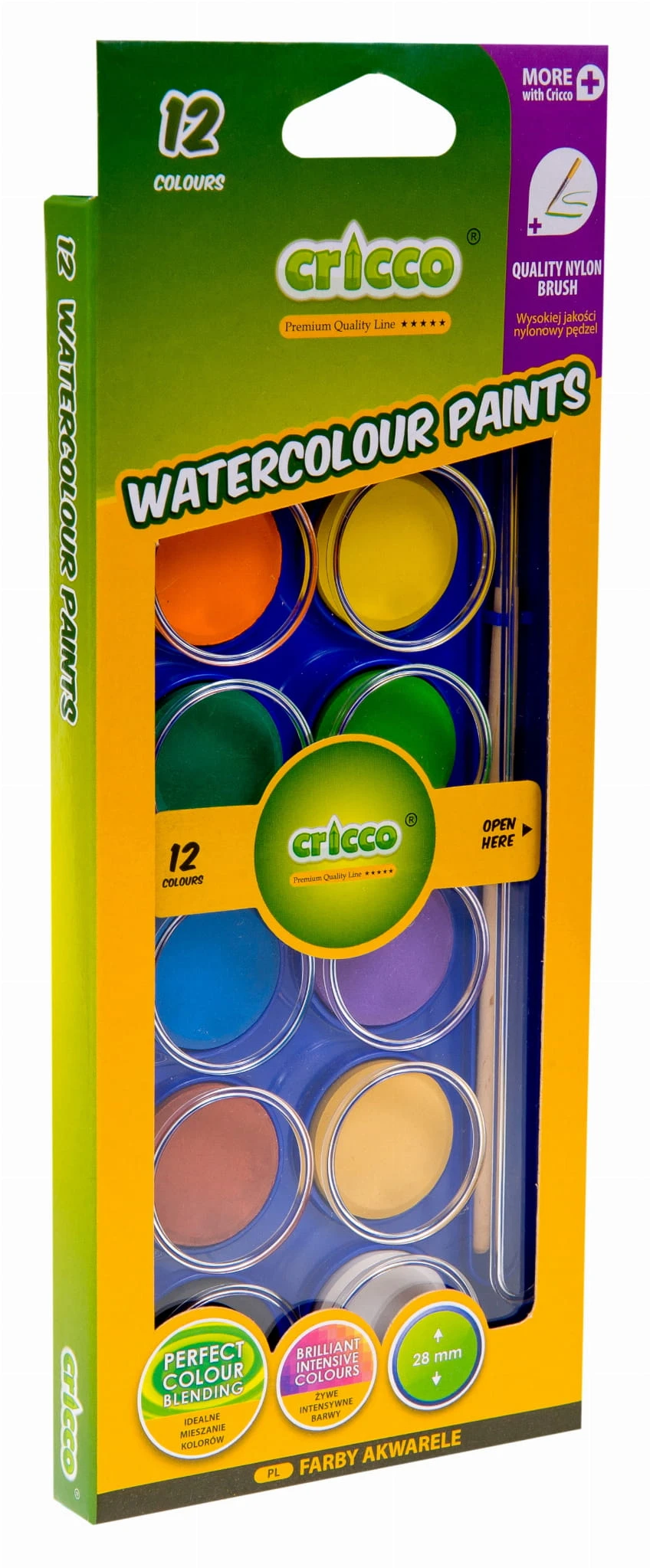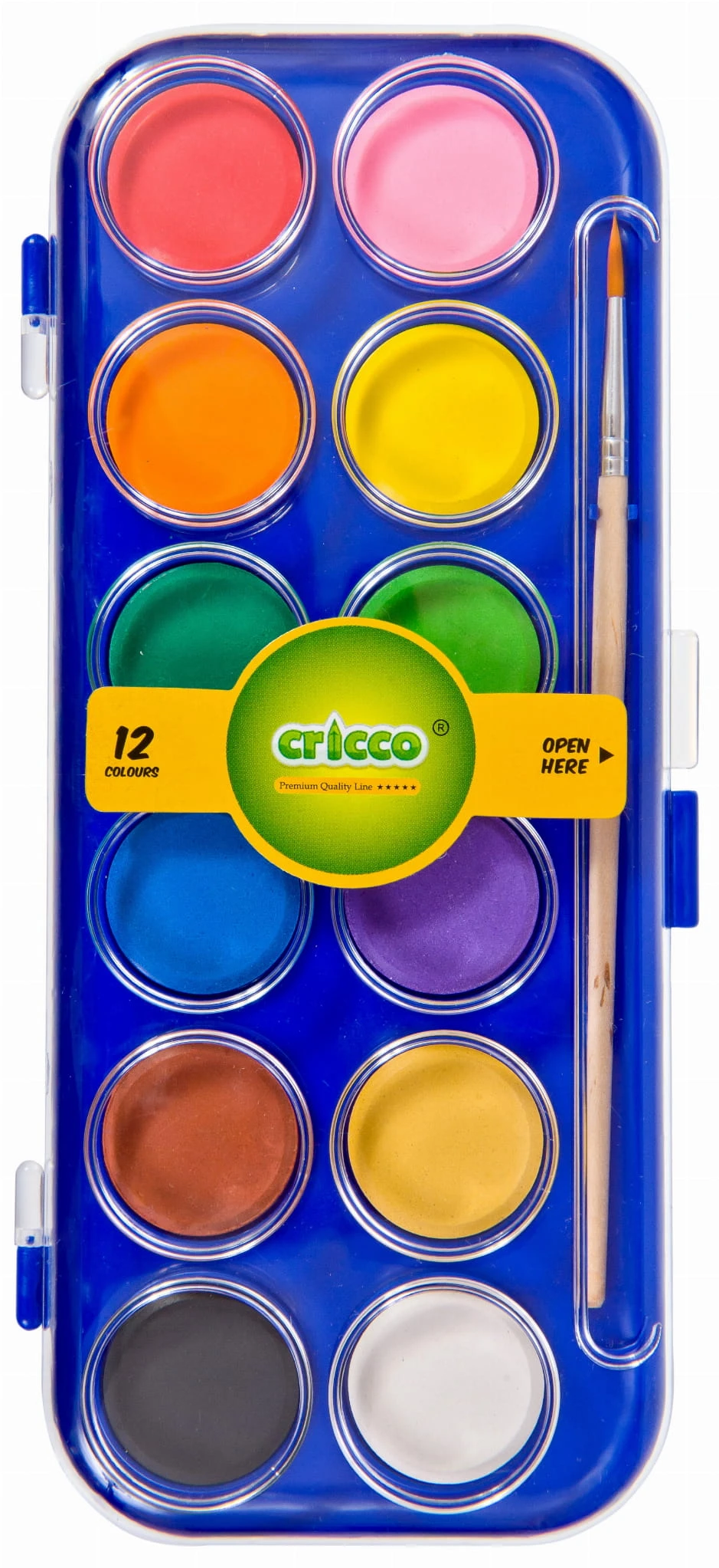 CRICCO Farby akwarelowe wodne 28 mm 12 kolorów + pędzelek