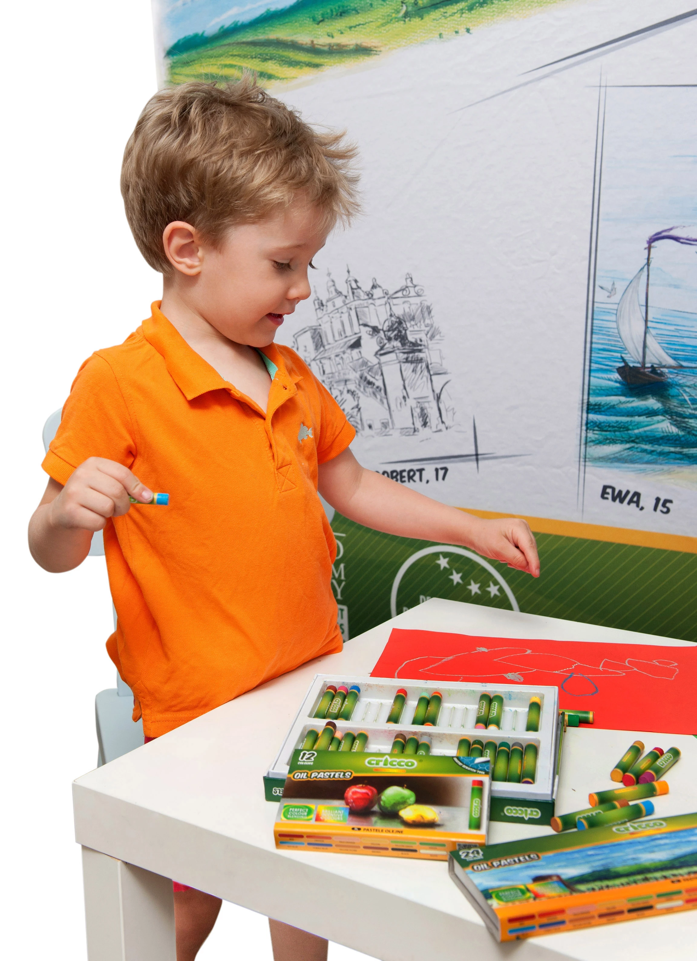 - Najwyższej jakości kredki pastelowe intensywnie nasączone barwnikami.