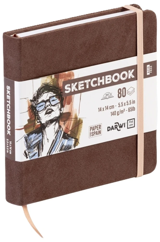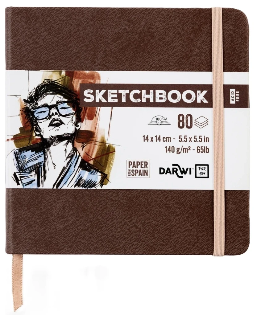 DARWI Szkicownik blok szkicowy z gumką 14 x 14 cm 140 g 80 kartek BRĄZOWY
