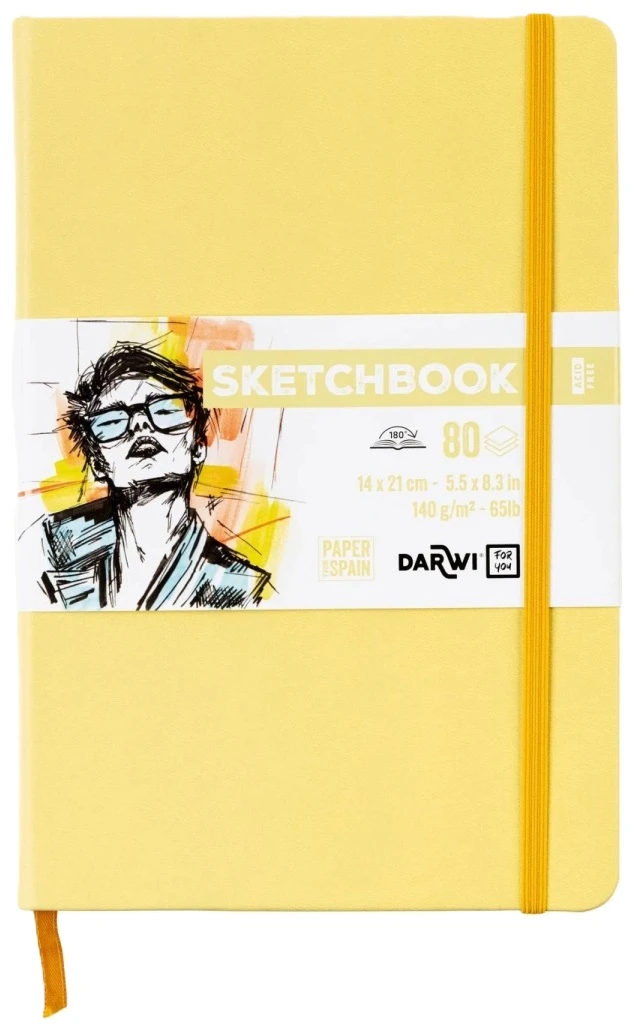 DARWI Szkicownik blok szkicowy z gumką A5 140 g 80 kartek BLADOŻÓŁTY