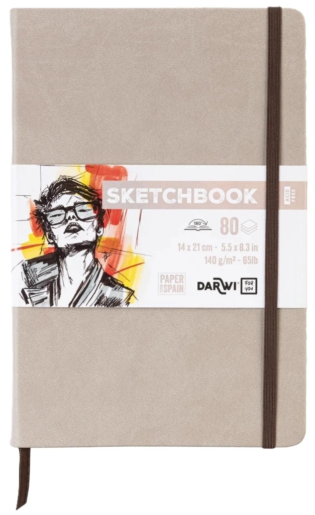 DARWI Szkicownik blok szkicowy z gumką A5 140 g 80 kartek SZAROBRĄZOWY
