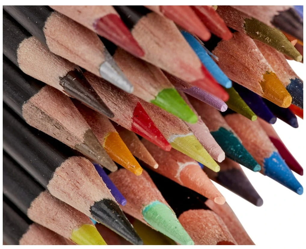 - Metalowa kasetka zawiera pełną gamę kredek - aż 150 kolorów.