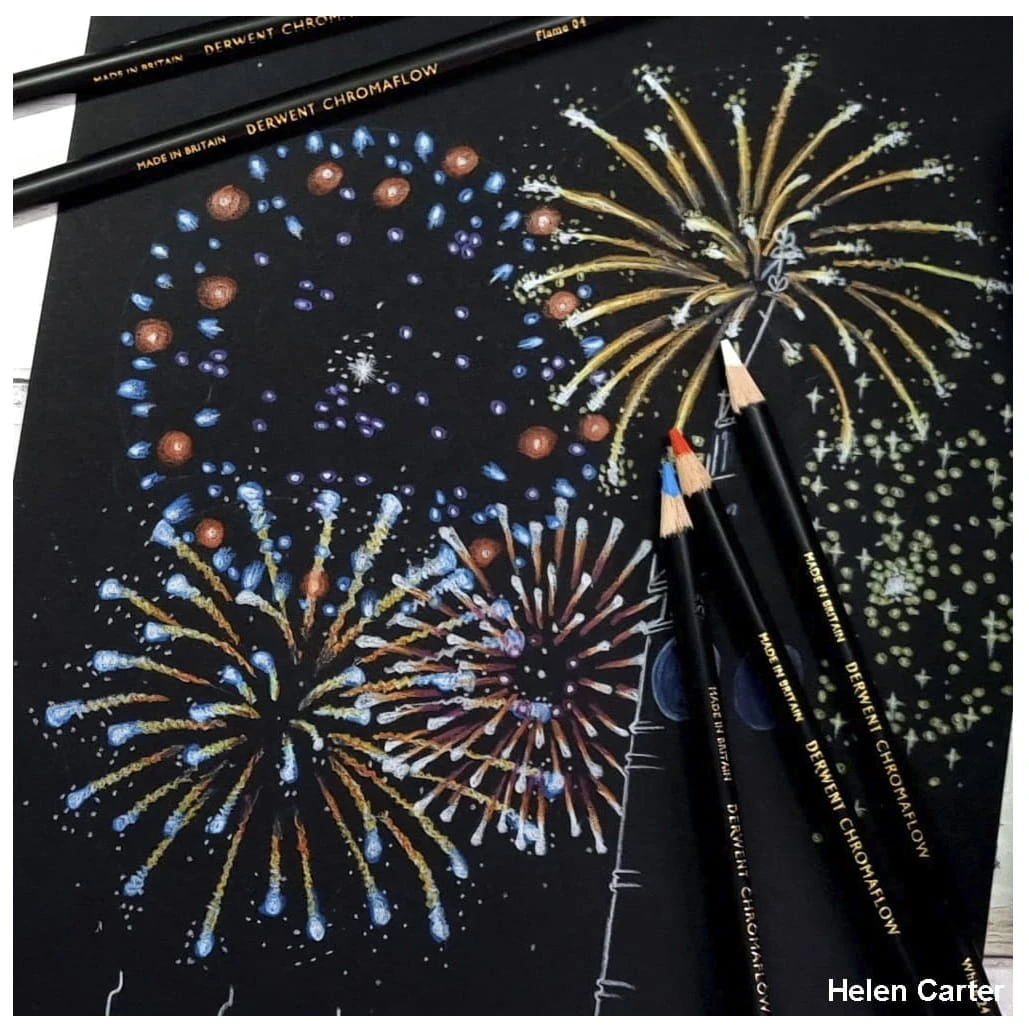 - Seria Derwent Chromaflow powstała w odpowiedzi na potrzeby początkujących oraz doskonalących się artystów. W atrakcyjnej cenie proponuje wspaniałą formułę – wygodną do nakładania warstw i mieszania kolorów. Wszystko dzięki dużemu napigmentowaniu, kremowej konsystencji i jedwabistej aplikacji na papier.