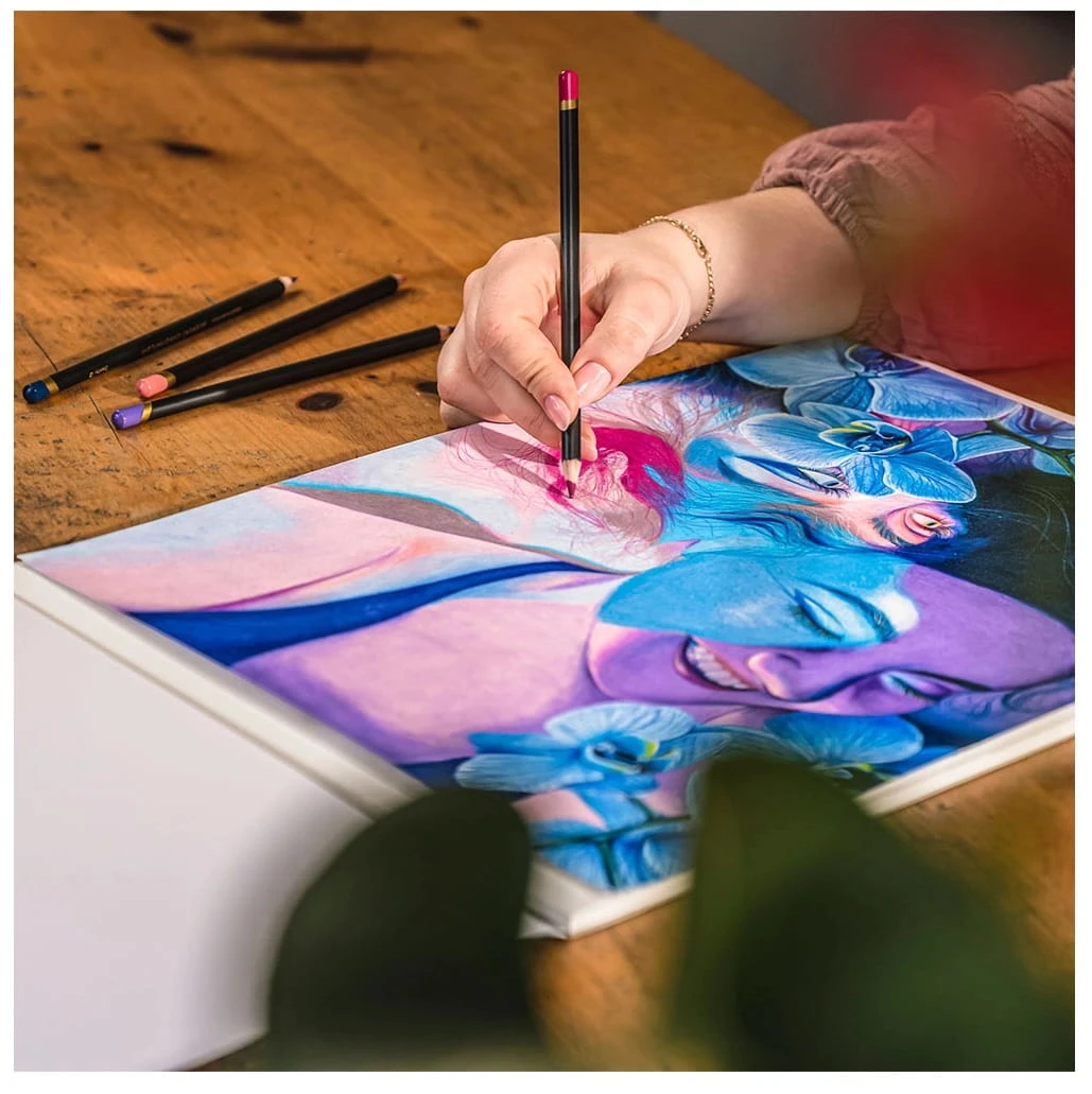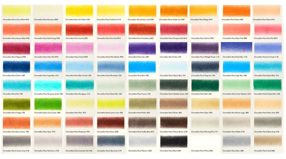 - Kredki Chromaflow mają grafit na bazie wosku o gładkiej teksturze, który gwarantuje łatwe mieszanie i cieniowanie kolorów.