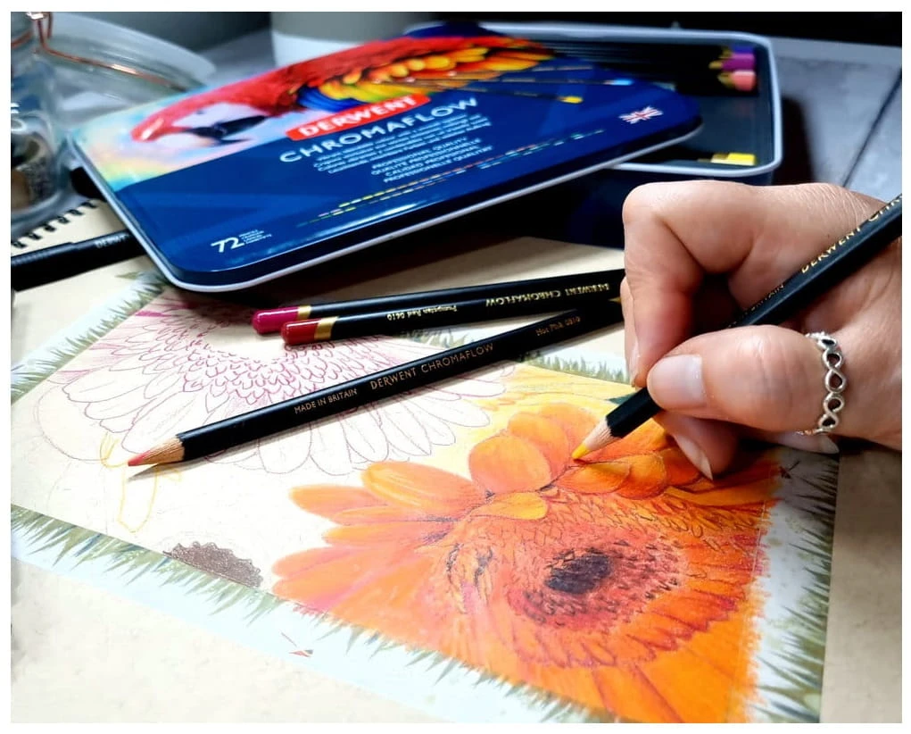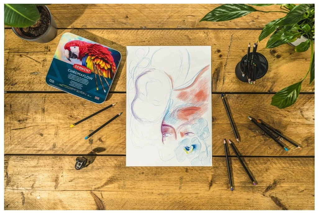- Seria Derwent Chromaflow powstała w odpowiedzi na potrzeby początkujących oraz doskonalących się artystów. W atrakcyjnej cenie proponuje wspaniałą formułę – wygodną do nakładania warstw i mieszania kolorów. Wszystko dzięki dużemu napigmentowaniu, kremowej konsystencji i jedwabistej aplikacji na papier.
