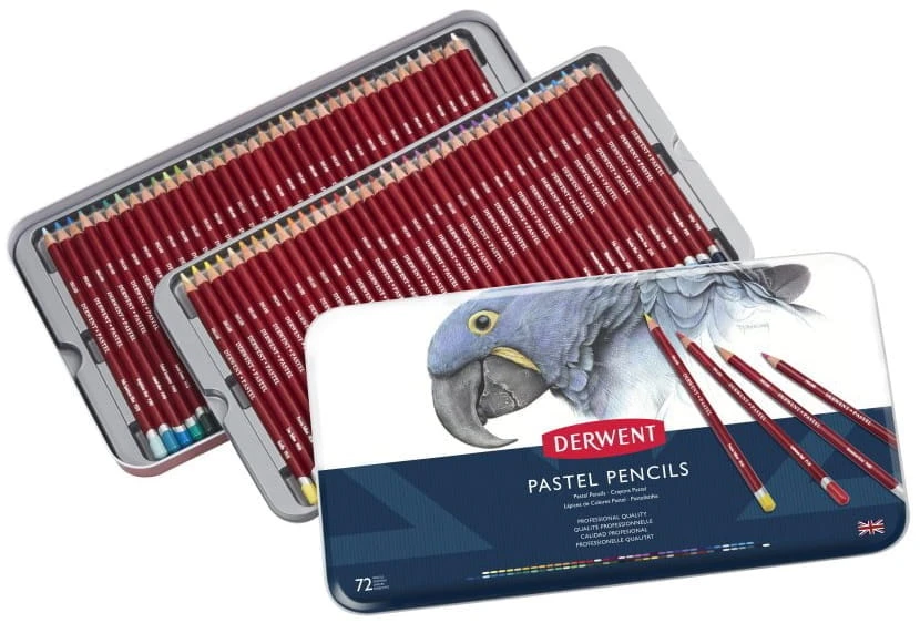 - Kredki pastelowe Derwent Pastel Pencils to wysokiej jakości suche pastele w formie kredki (w drewnianej oprawce).