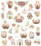 - Zestaw naklejek z uroczymi, wielkanocnymi króliczkami i pisankami w sielskim, delikatnie rustykalnym stylu. Przykuwają wzrok dzięki dodatkowi opalizującego brokatu.