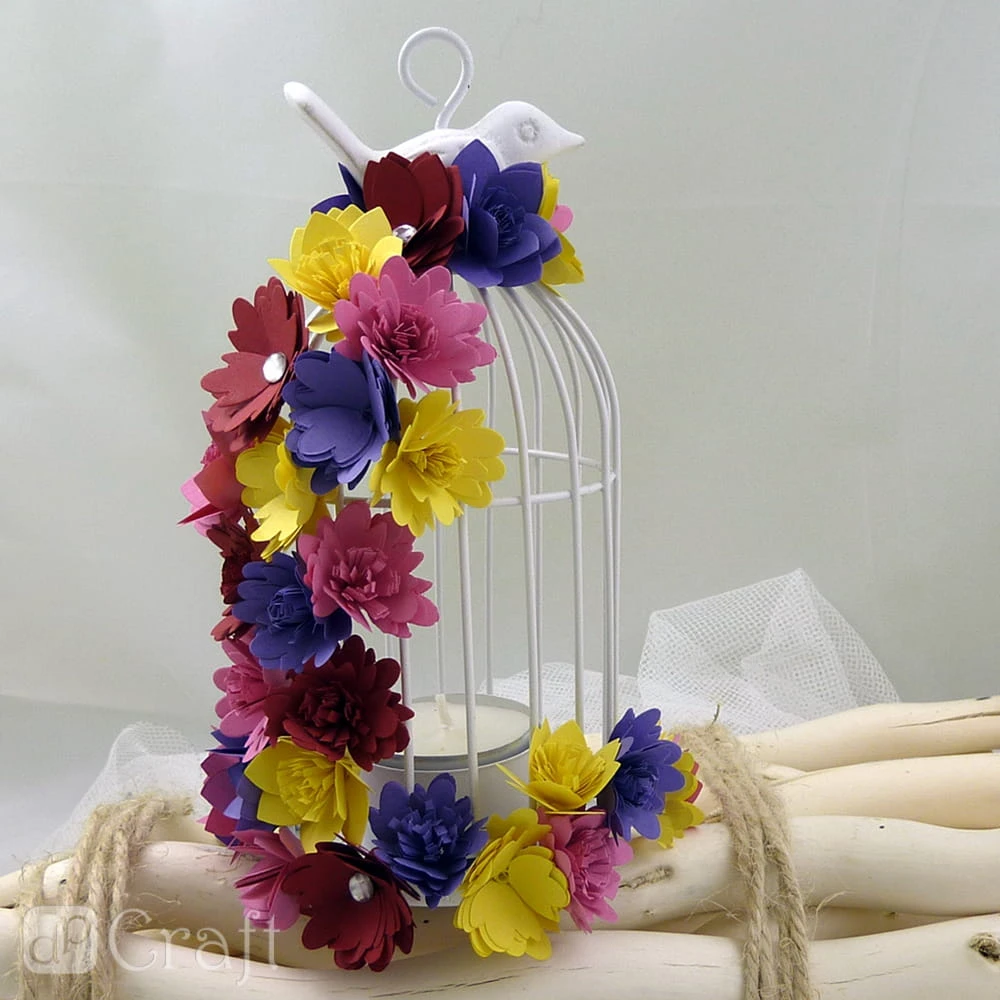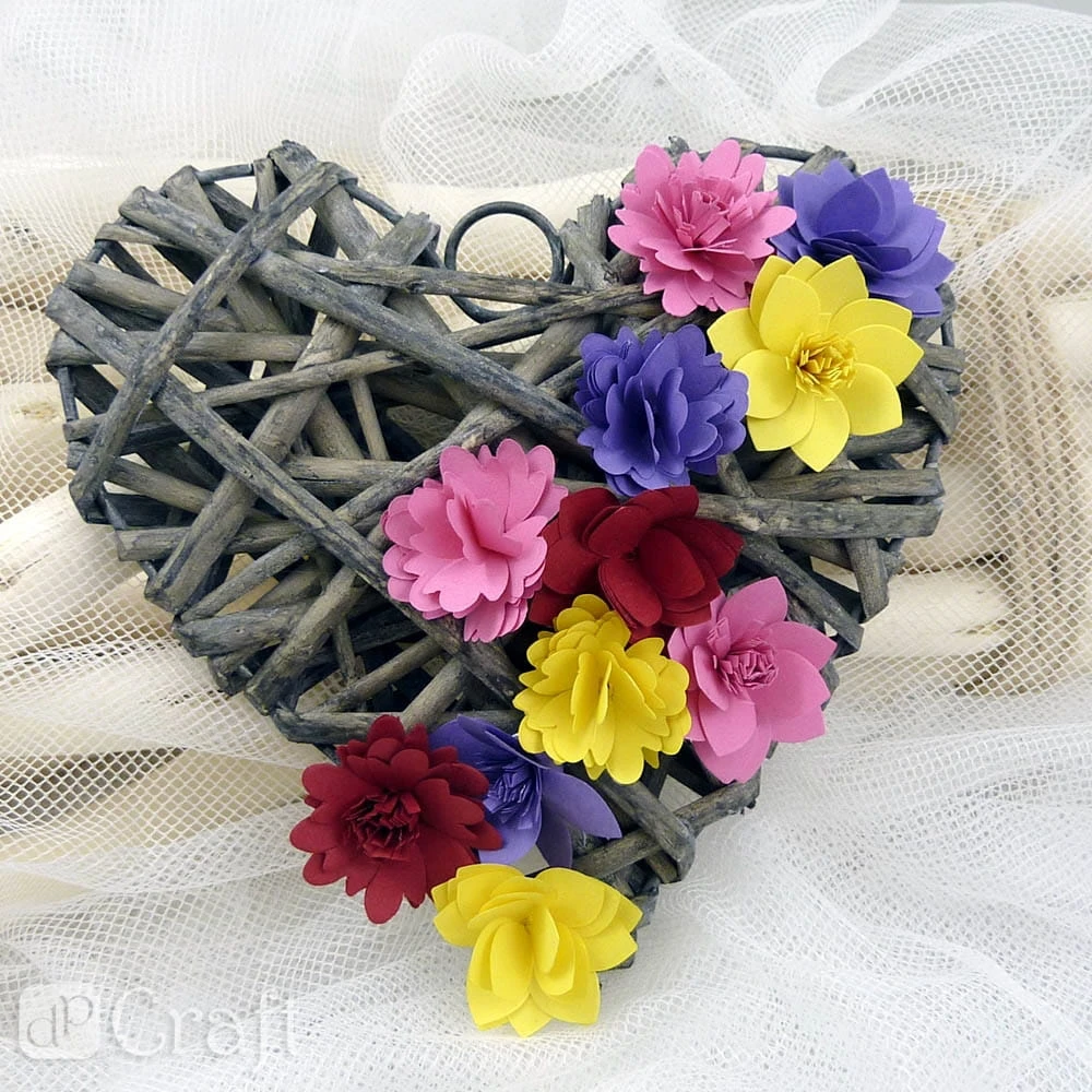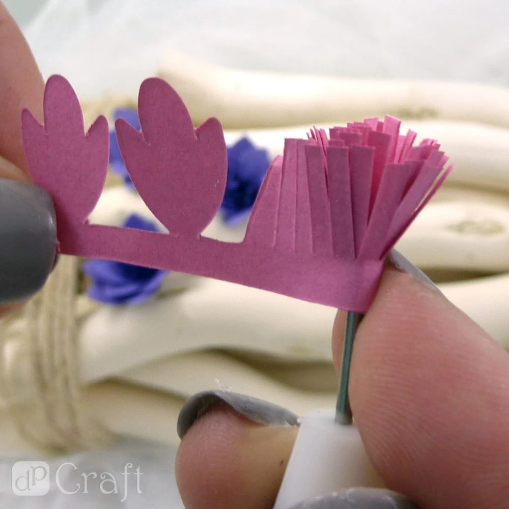 - Zwijanie zaczynamy od strony frędzli, z nich powstaną pręciki kwiatka, które otoczą płatki. Po zrolowaniu paska otrzymamy kwiatek, gotowy element dekoracyjny do wykorzystania w cardmakingu i scrapbookingu (do tworzenia kartek, albumów i innych projektów).
