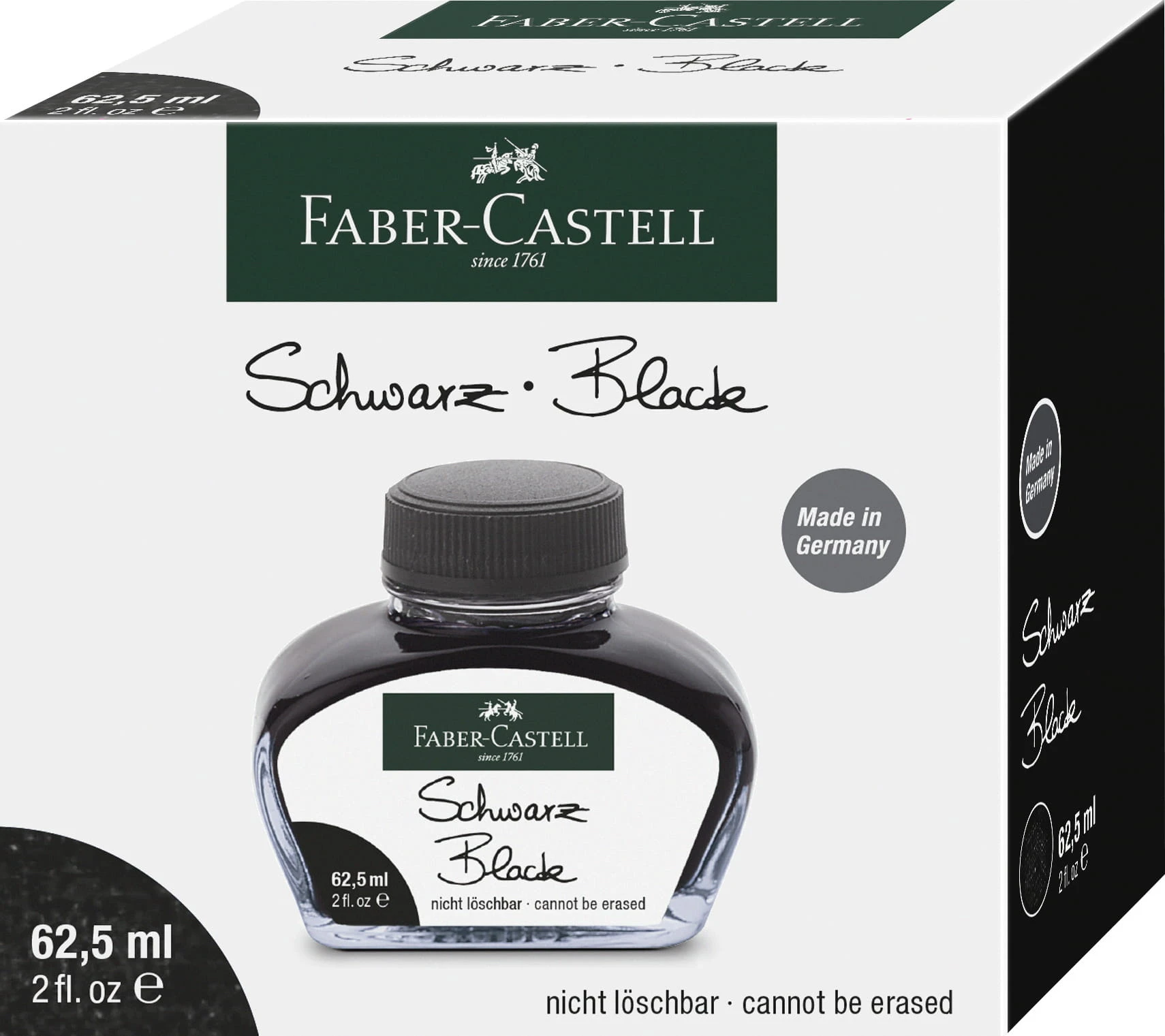 - Wysokiej jakości atrament do piór wiecznych Faber-Castell w kolorze czarnym.