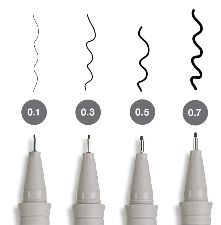 - grubości w zestawie: 0.1, 0.3, 0.5, 0.7 (czarne)