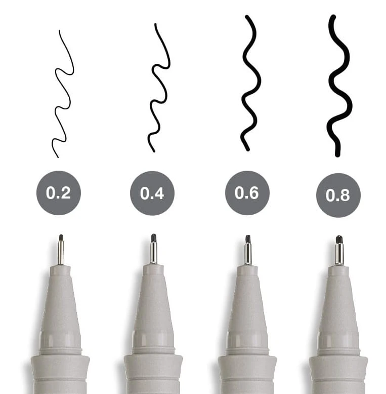 - grubości w zestawie: 0.2, 0.4, 0,6, 0.8 (czarne)