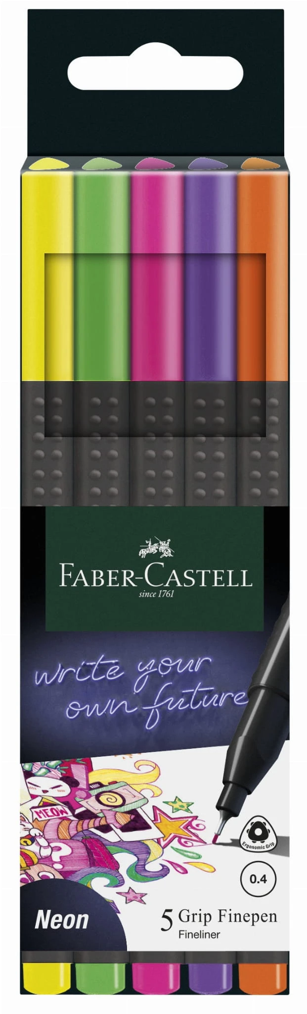 FABER-CASTELL Cienkopisy pisaki Grip 5 kolorów NEON