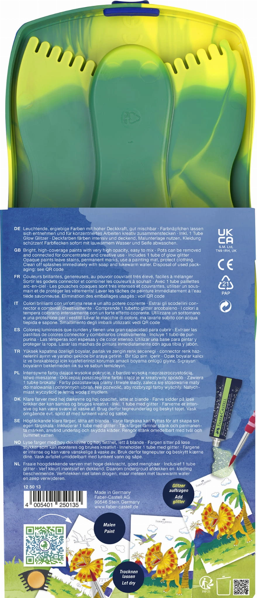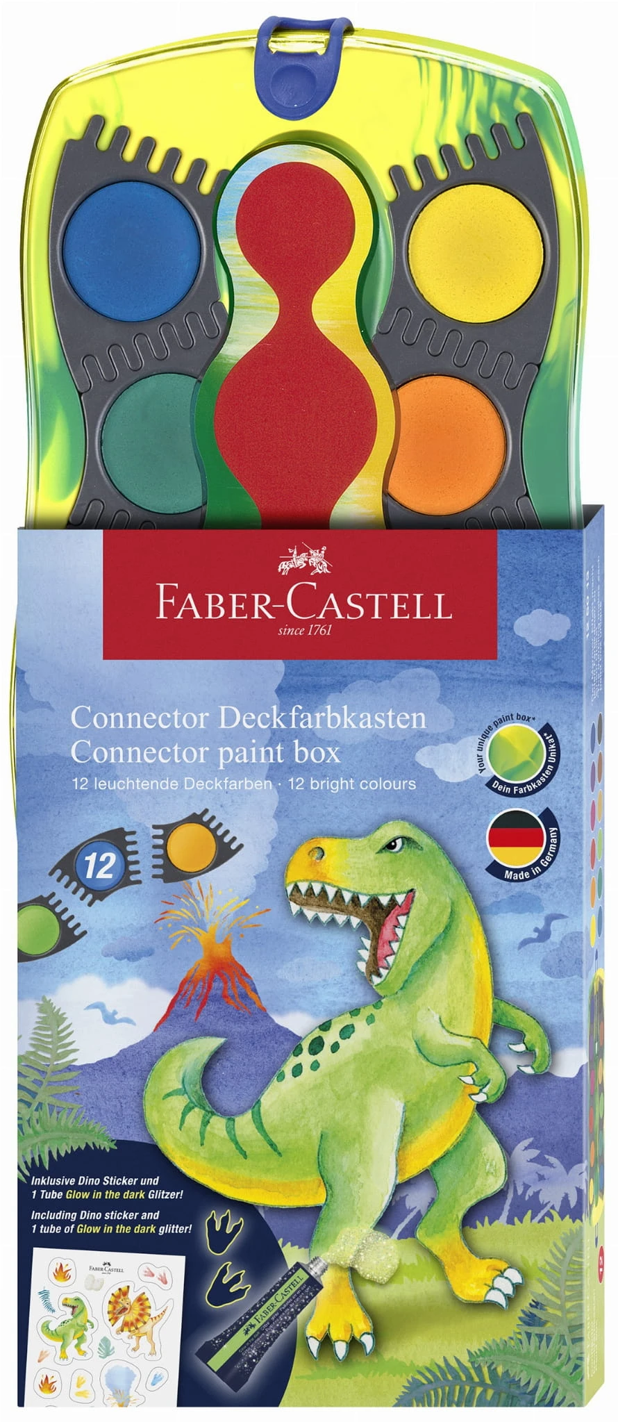 FABER-CASTELL Farby akwarelowe Connector 12 kol Dinozaury