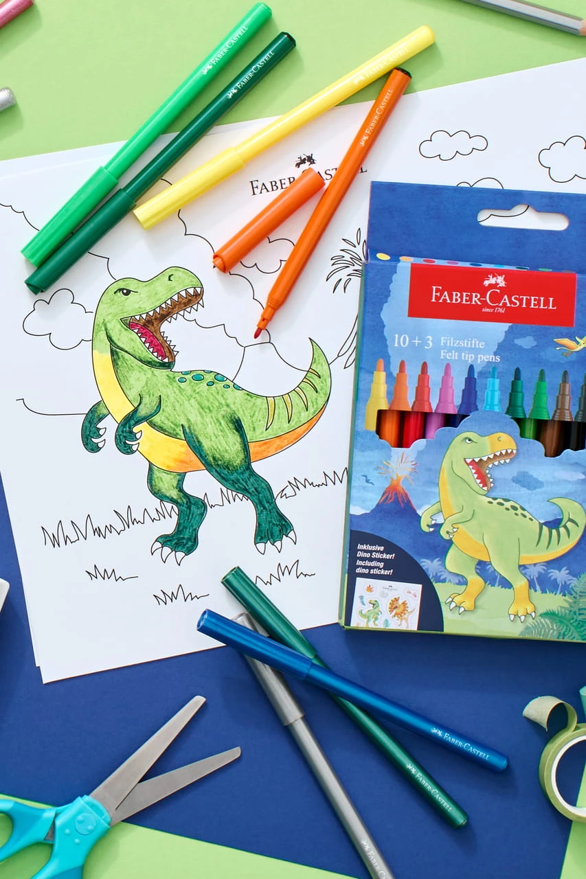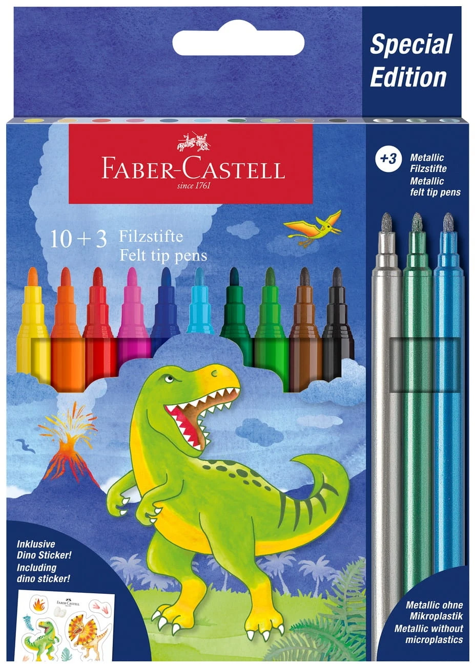 FABER-CASTELL Flamastry pisaki Zamek Dinozaury 10 + 3 metaliczne i naklejki