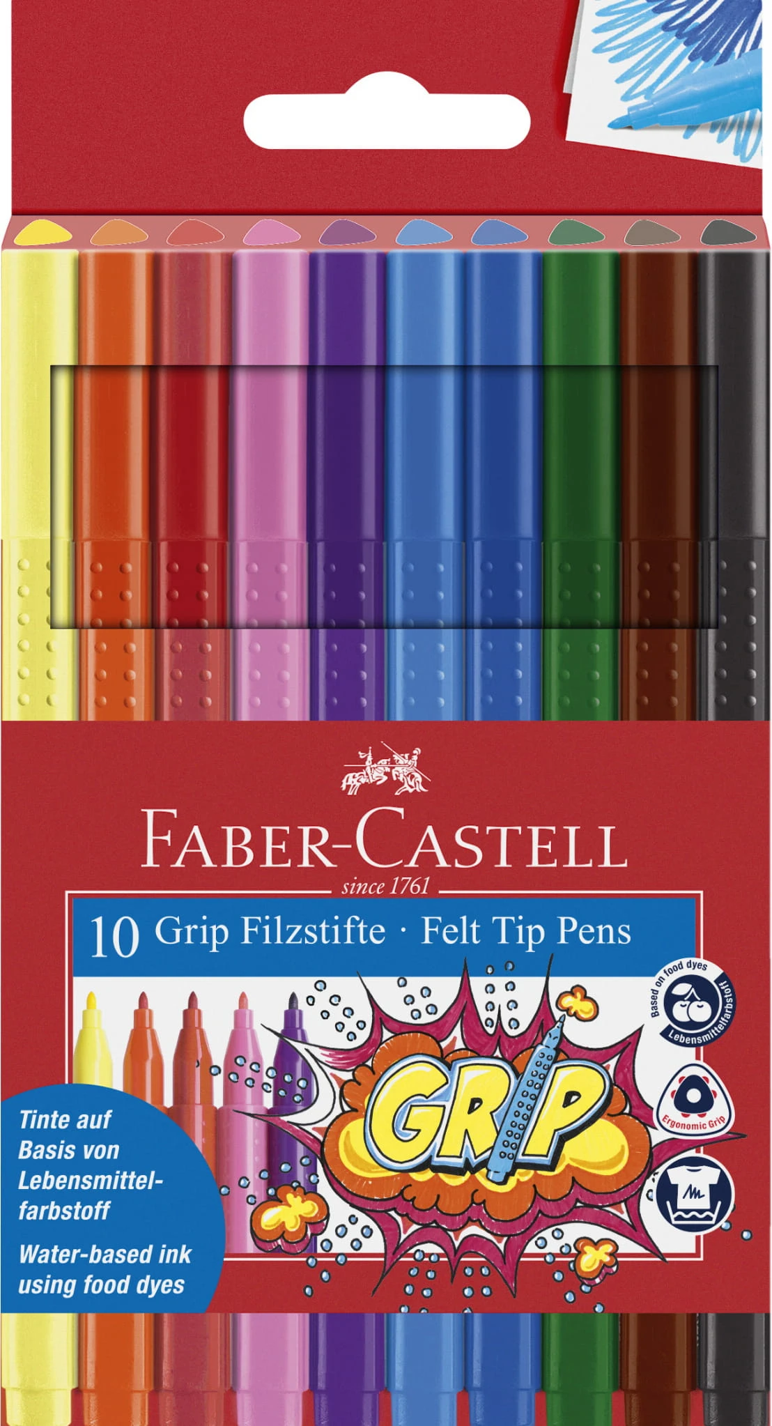 - Flamastry z serii Grip 10 kolorów w opakowaniu kartonowym.