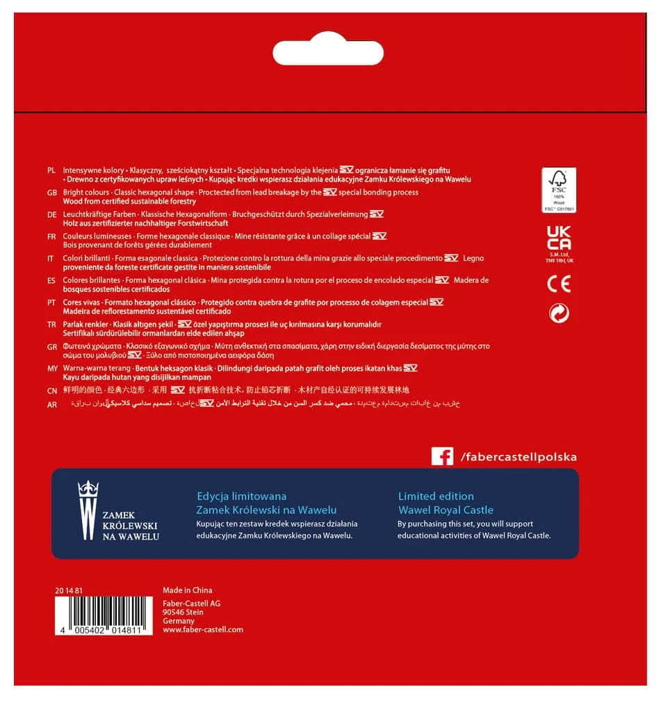 - Kupując ten zestaw kredek wspierasz działania edukacyjne Zamku Królewskiego na Wawelu. Ilustracja Zamku Królewskiego na Wawelu wykonana przez Berenikę Kołomycką, polską rysowniczkę komiksów i ilustratorkę.