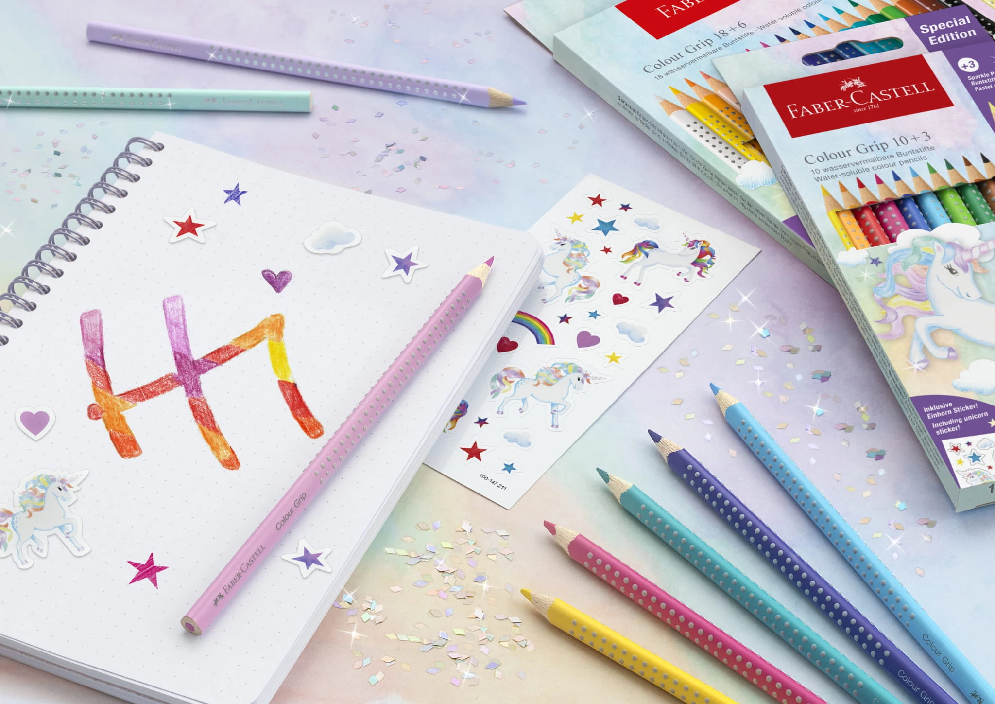 FABER-CASTELL Kredki trójkątne Grip 10+3 pastelowe Unicorn