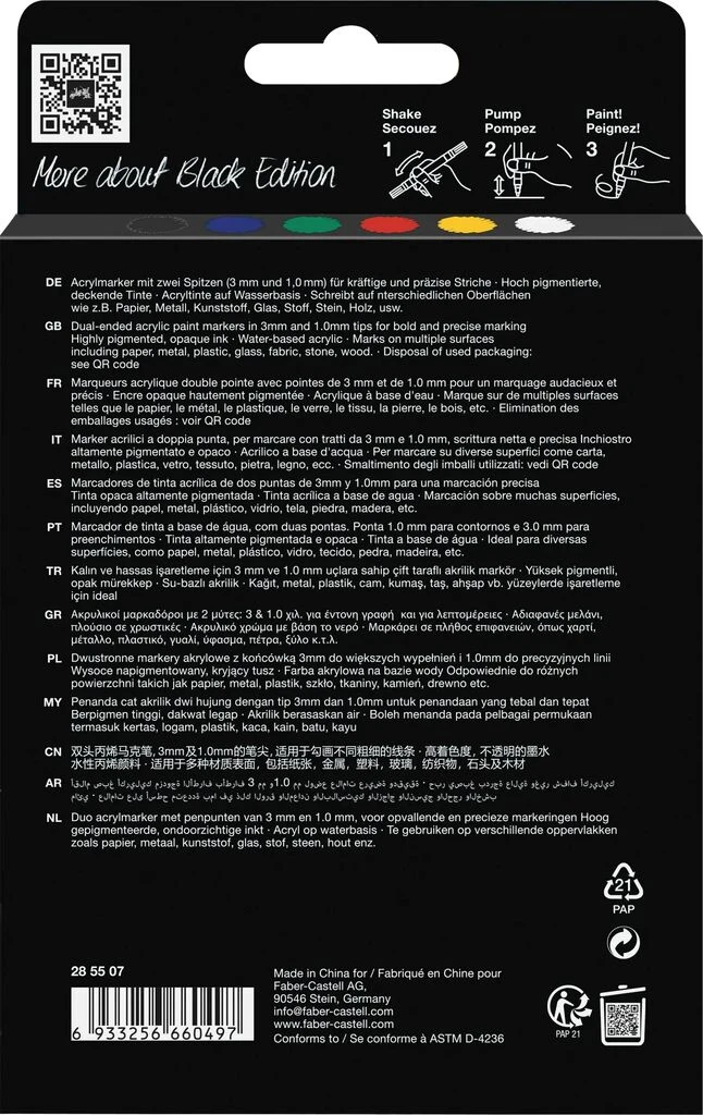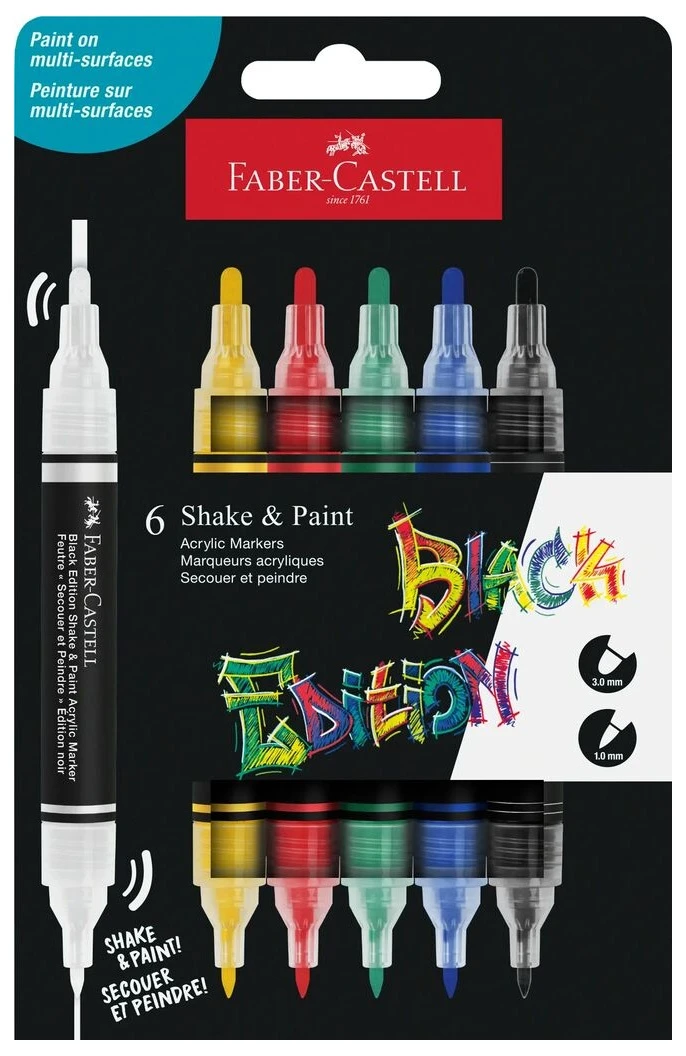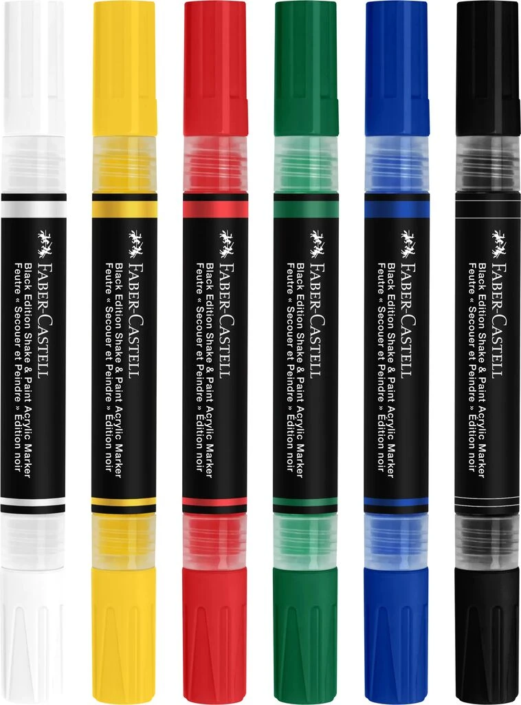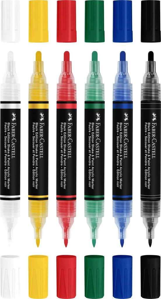 - Marker akrylowy dwustronny Black Edition - 6 sztuk w podstawowych kolorach od Faber-Castell.