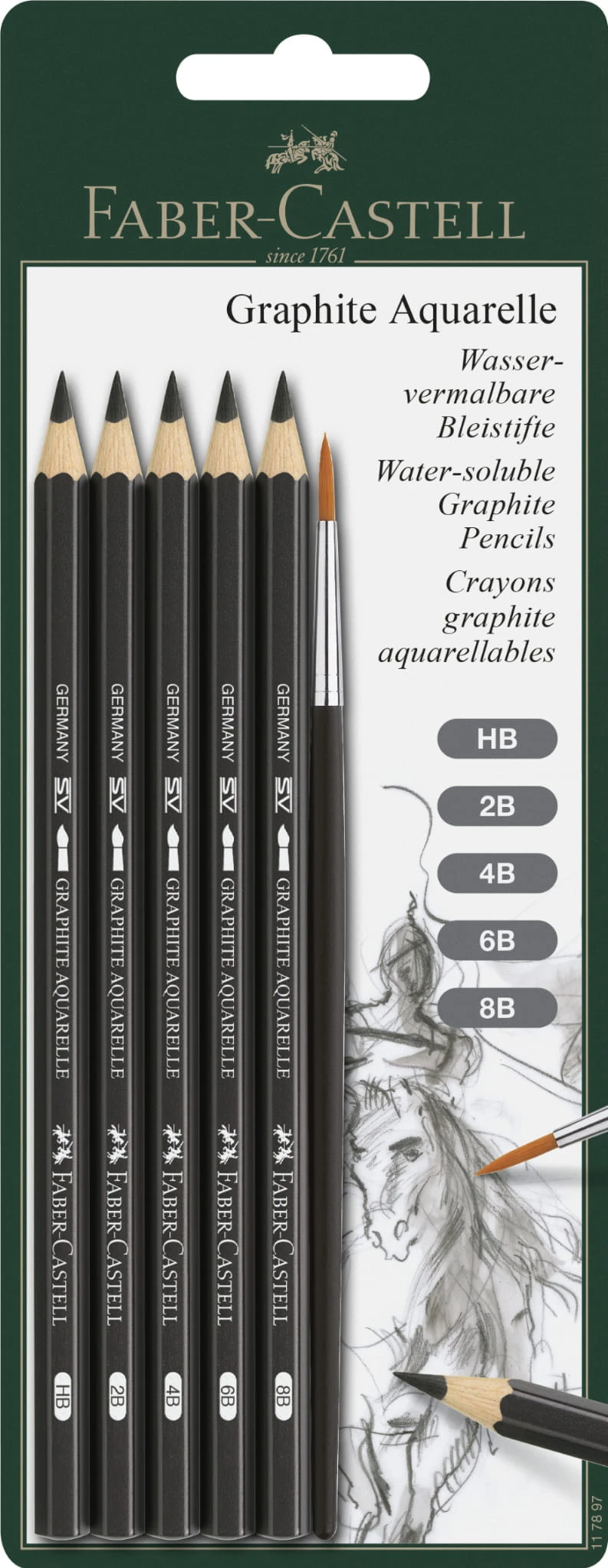 FABER CASTELL Zestaw ołówków akwarelowych 5 sztuk + pędzel