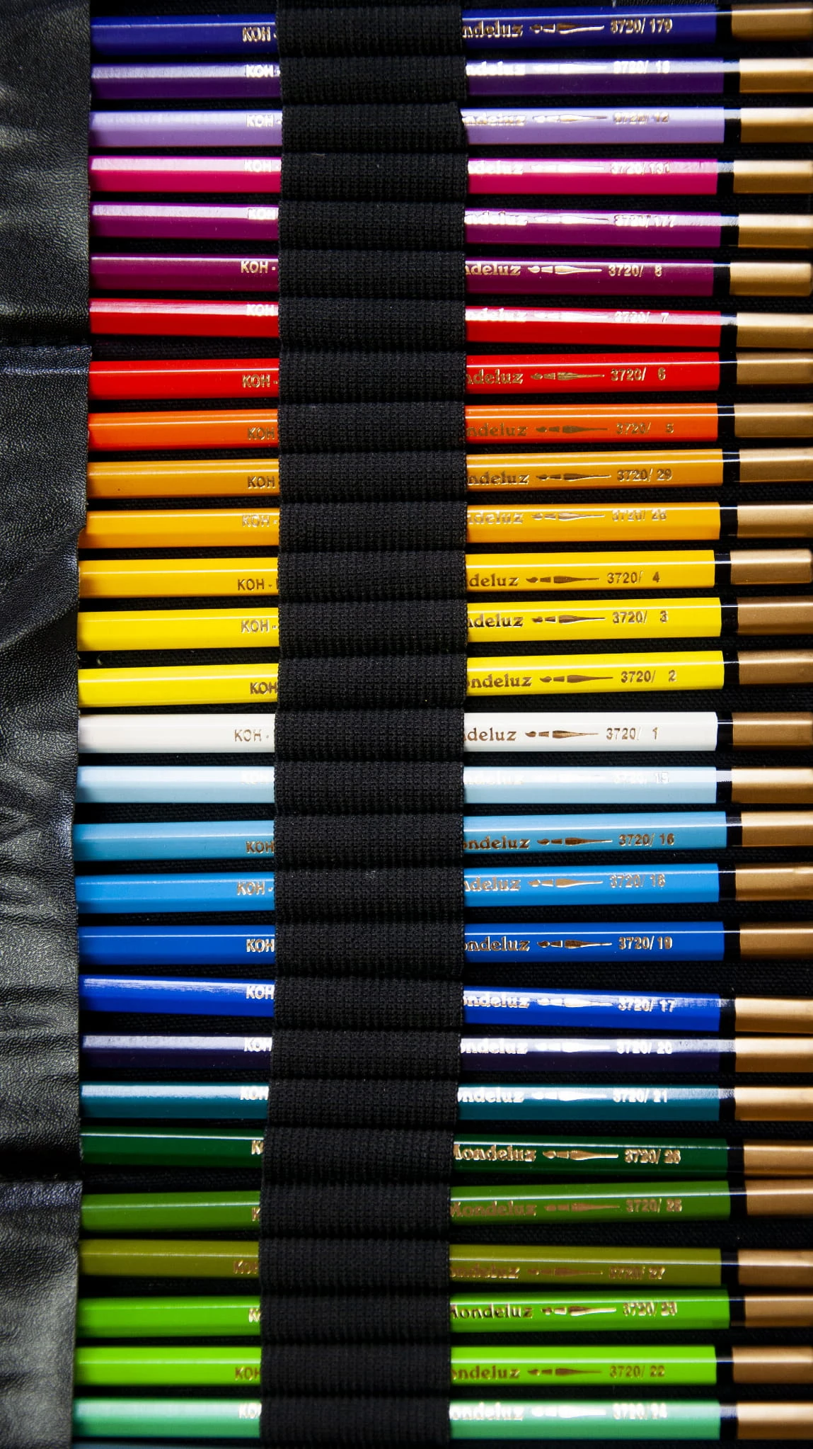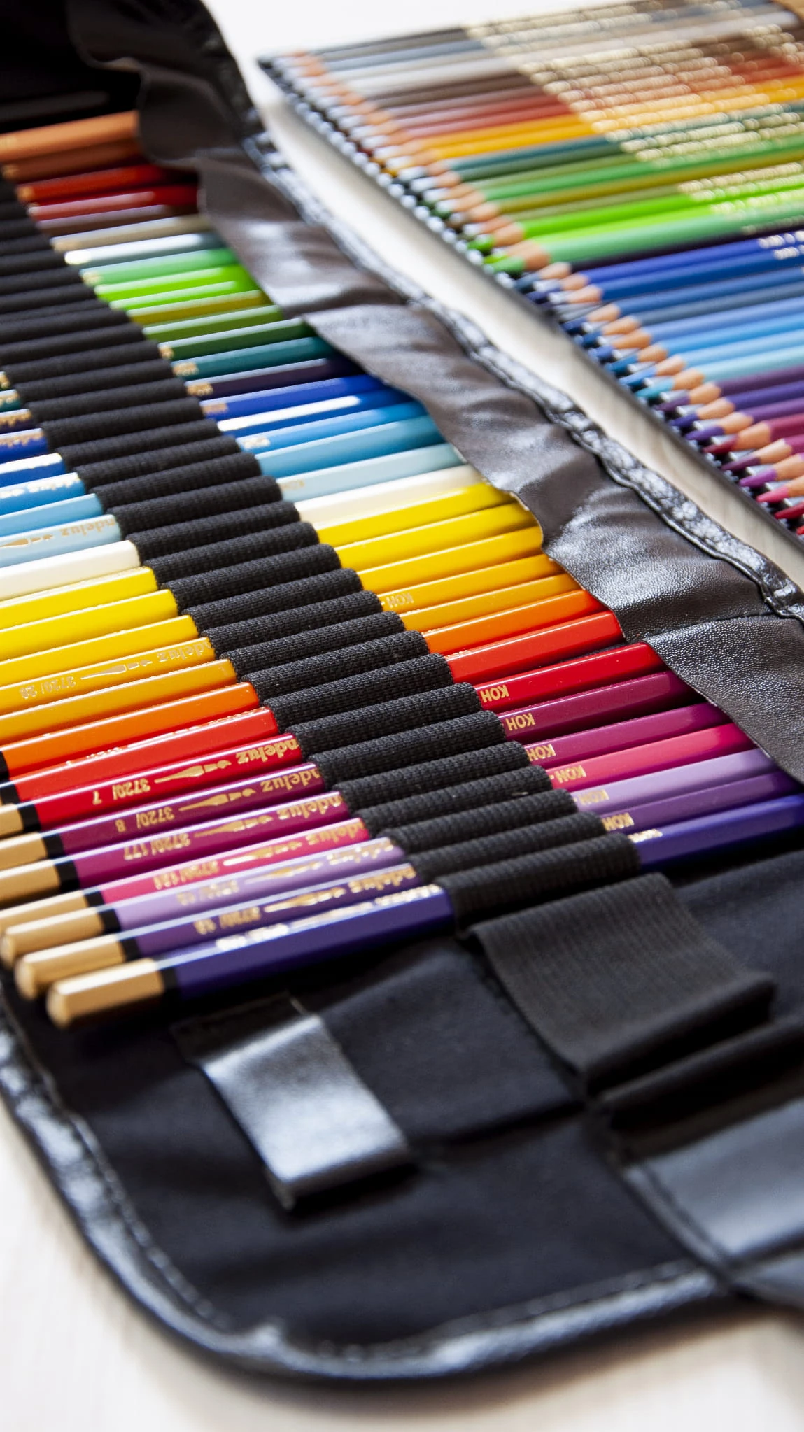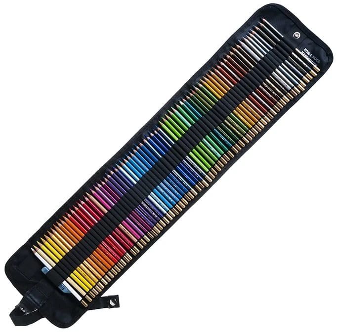 Zestaw zawiera 72 kolory kredek oraz gumkę w rozkładanym, czarnym etui.