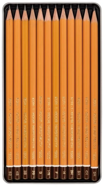- Twardości w zestawie: 5B, 4B, 3B, 2B, B, HB, F, H, 2H, 3H, 4H, 5H