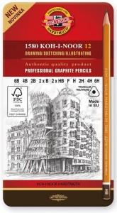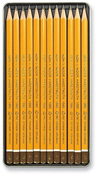 - Twardości w zestawie: 6B, 4B, 2B, 2 x B, 2 x HB, F, H, 2H, 4H, 6H