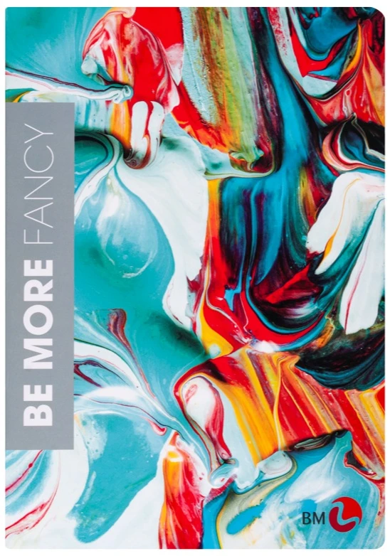 - Kolekcja zeszytów Be More Fancy. Wszystkie zeszyty z tej kolekcji mają okładki z futurystycznymi wzorami.