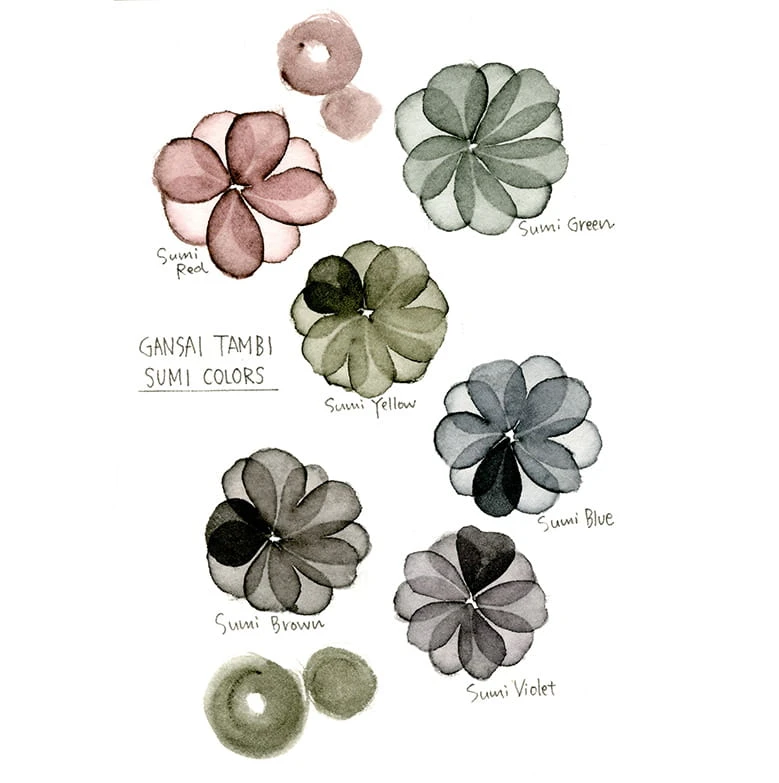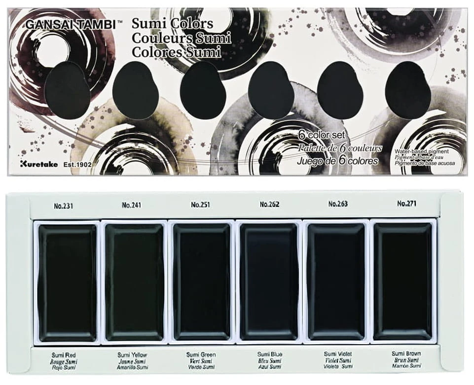 - Zestaw "Sumi Colors" zawiera farby w odcieniach: 231 Sumi Red, 241 Sumi Yellow, 251 Sumi Green, 262 Sumi Blue, 263 Sumi Violet, 271 Sumi Brown