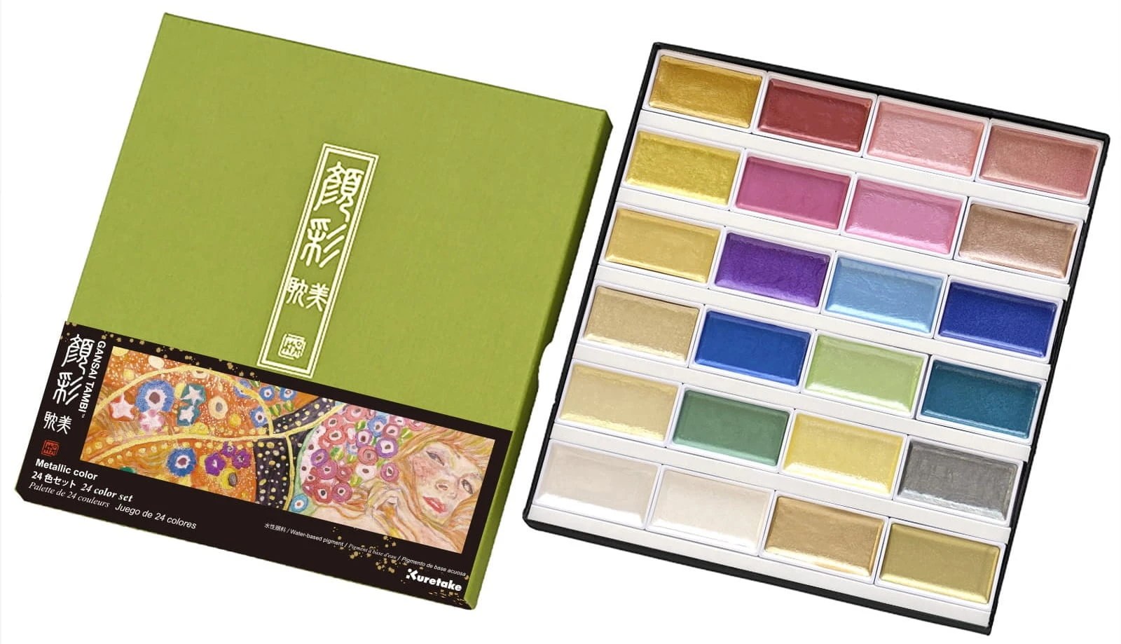 KURETAKE Farby w kostkach Gansai Tambi 24 kolory METALICZNE