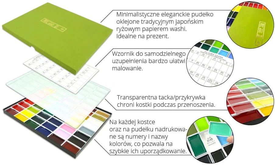 - Farby zostały opracowane przy współpracy ze znanymi japońskimi artystami.