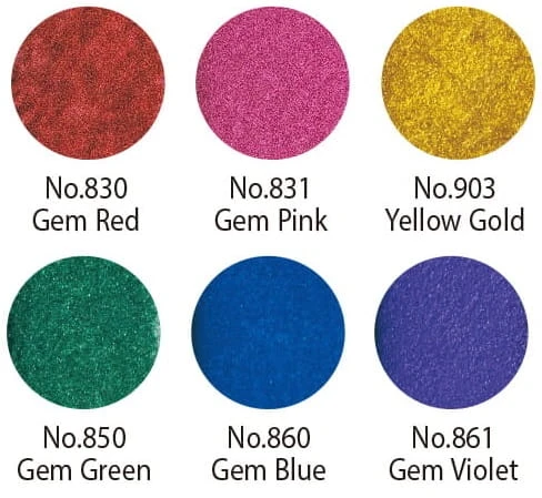 - Zestaw "Gem Colors" zawiera pięknie odbijające światło metaliczne farbki w odcieniach: 830 Gem Red, 831 Gem Pink, 903 Yellow Gold, 850 Gem Green, 860 Gem Blue, 861 Gem Violet